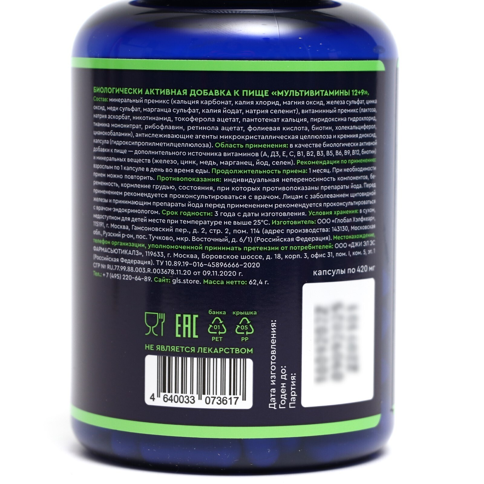 Мультивитамины "12+9" GLS, 120 капсул по 420 мг