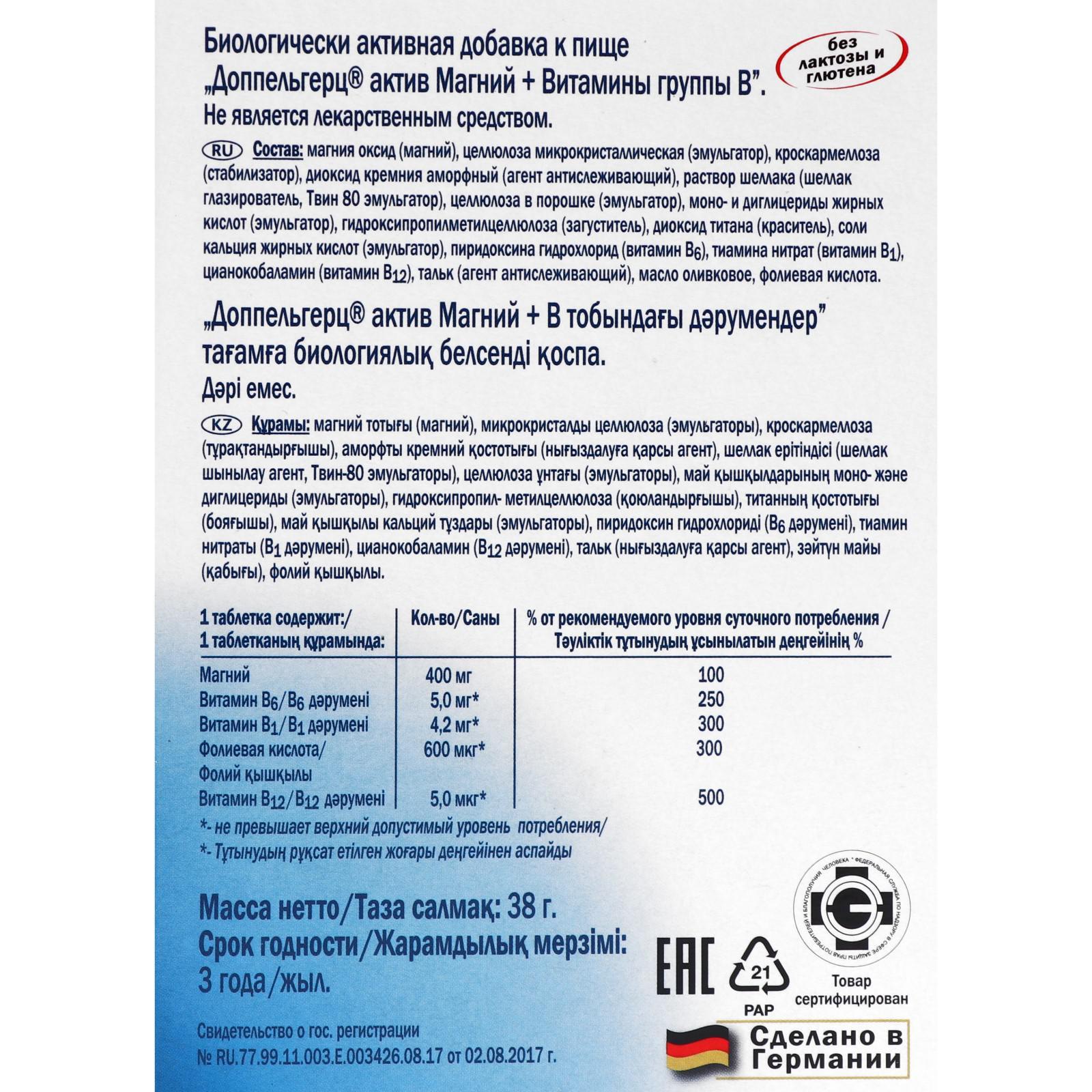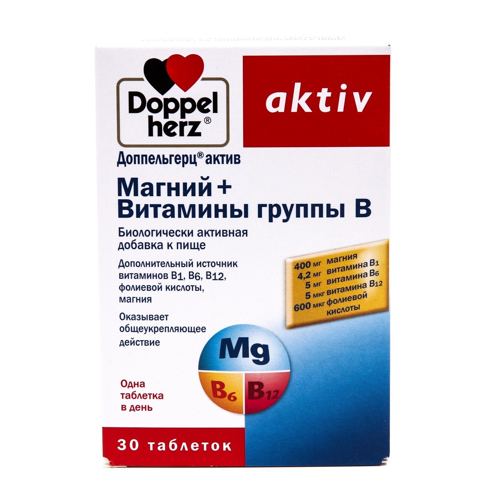 Доппельгерц Актив, магний + витамины B, 30 таблеток