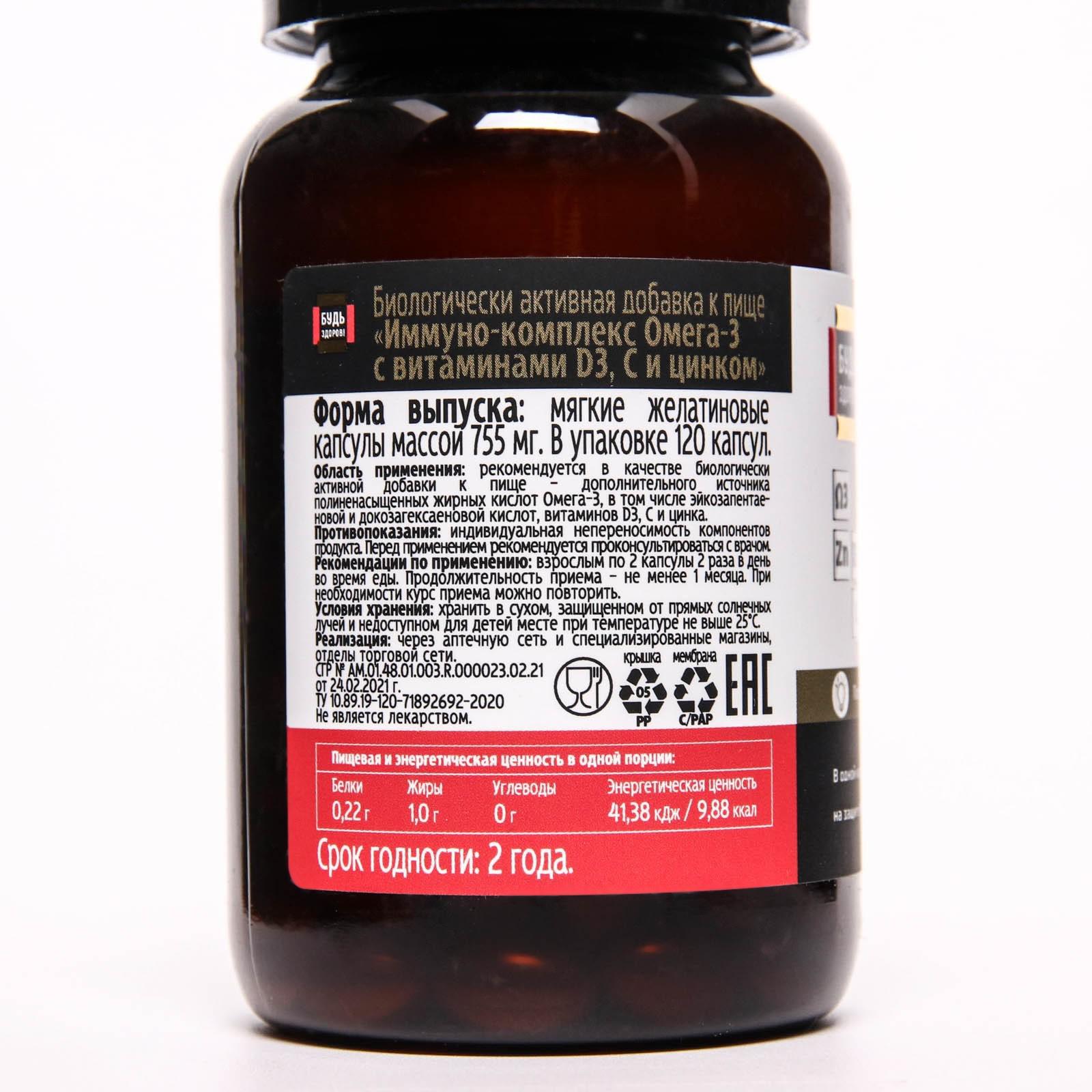 Иммуно-комплекс Омега-3 с витаминами D3, С и цинком Будь Здоров! 120 капсул по 775 мг