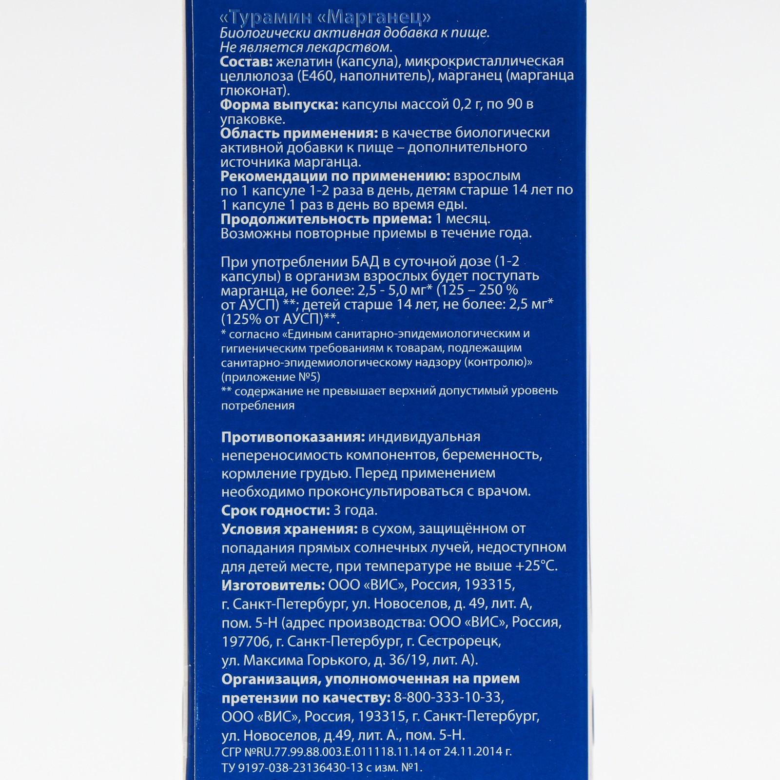 Состав: желатин (капсула), микрокристаллическая целлюлоза (Е460, наполнитель), марганец (марганца глюконат).