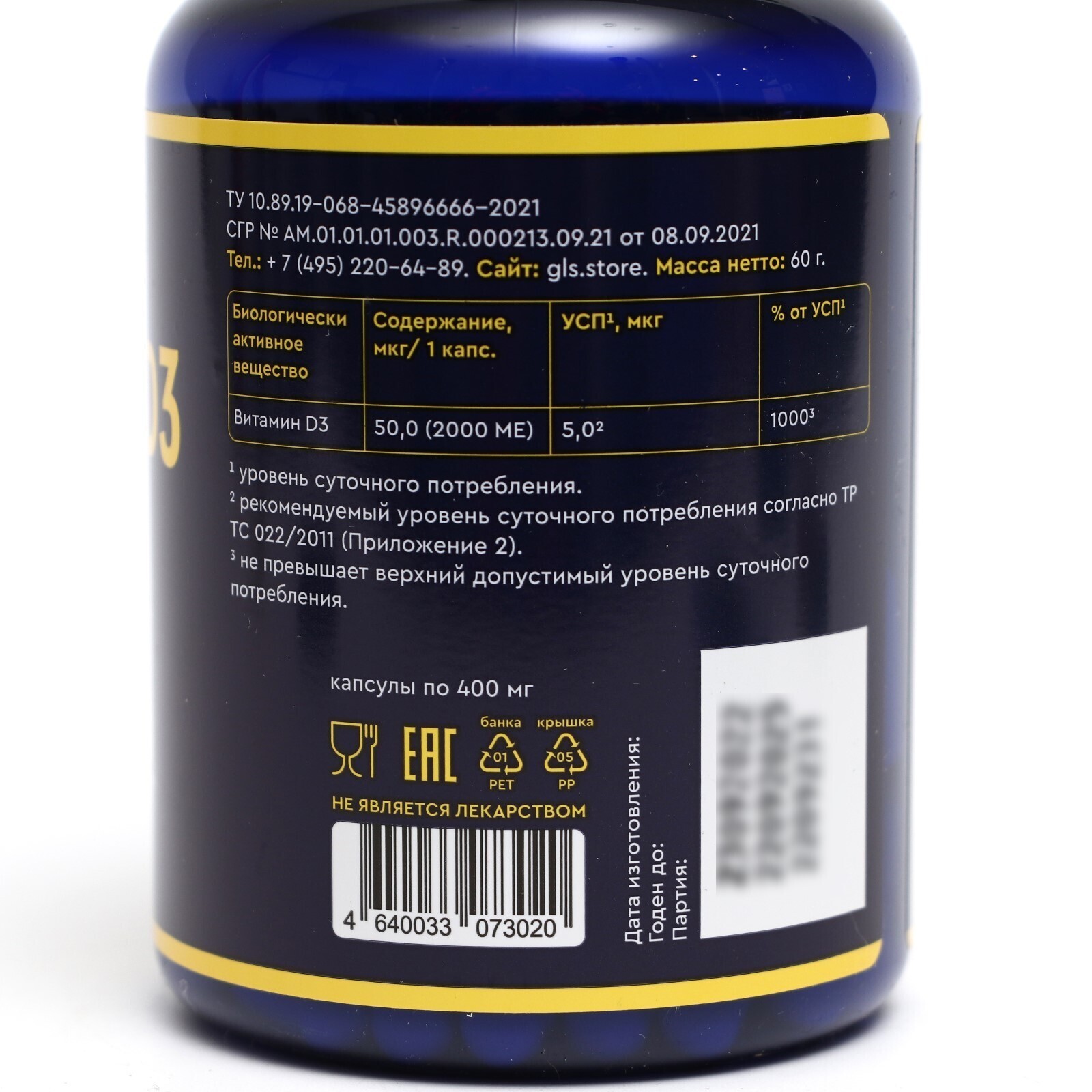 Витамин D3 2000 GLS, 120 капсул по 400 мг