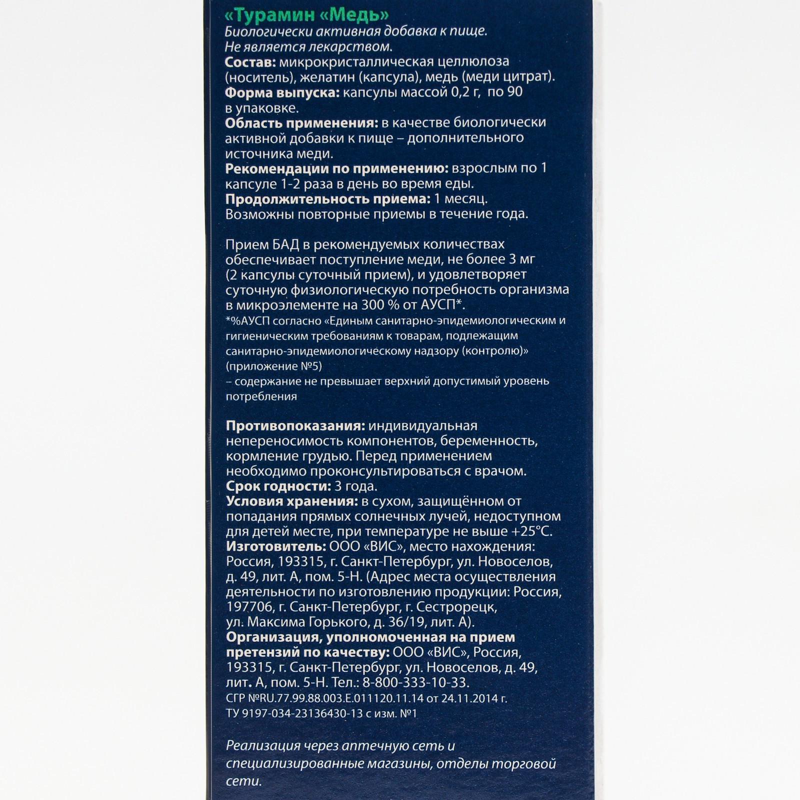 Капсулы Турамин Медь рекомендуются к приему в качестве биологически активной добавки к пище - дополнительного источника меди.