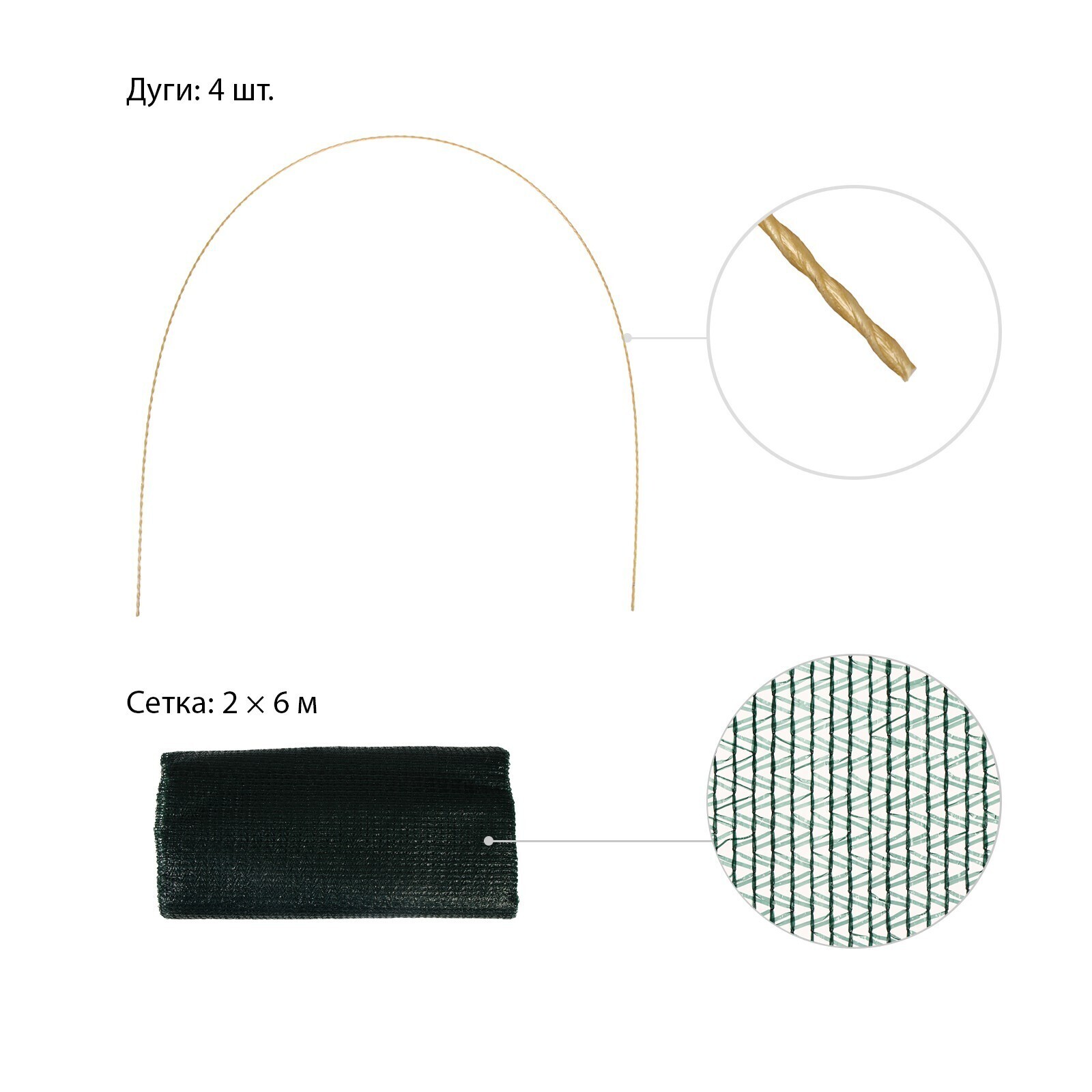 Сетка-навес (парник), 4м, 4 дуги, дуга 2м стеклопластик, d=4мм, сетка тень 35 %
