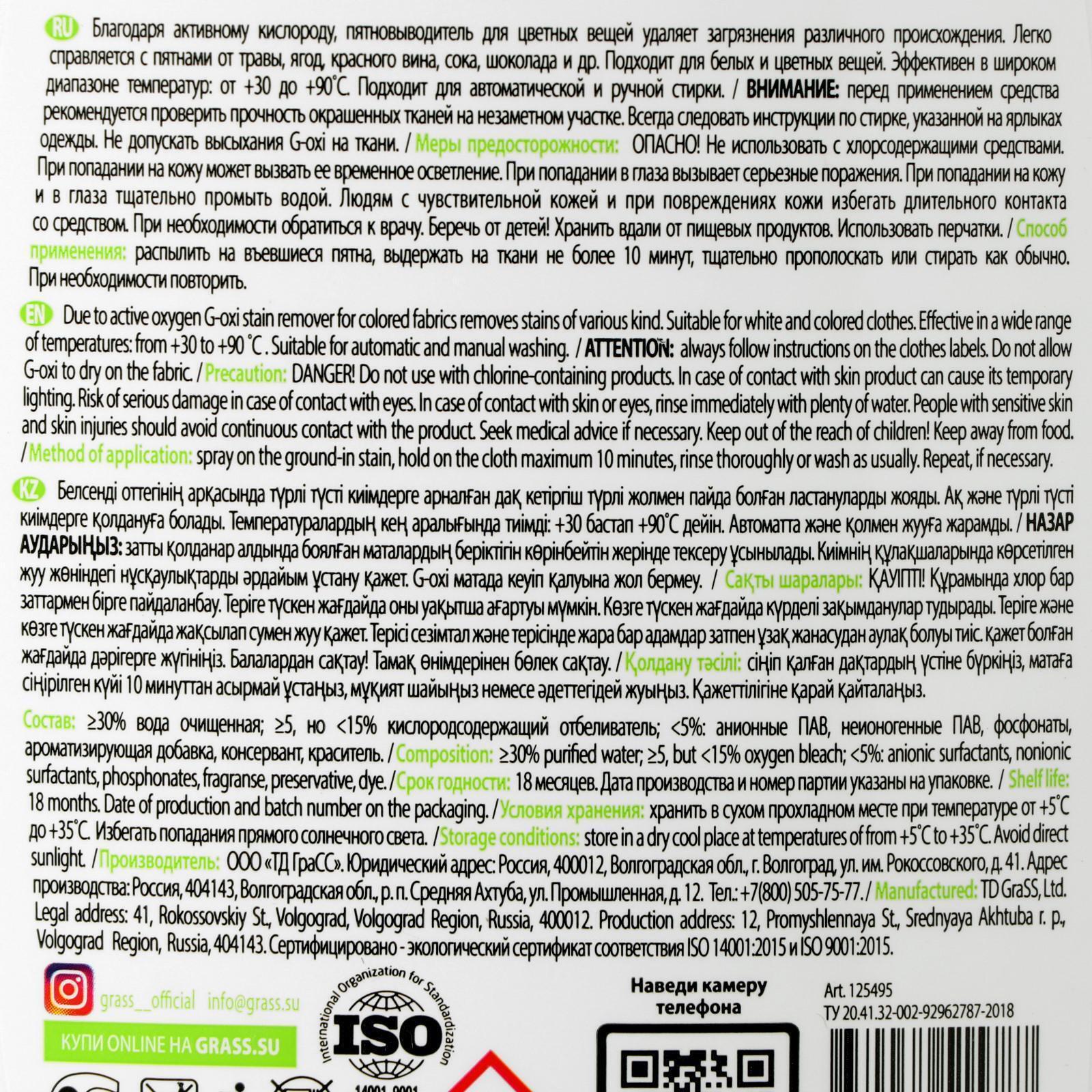 Пятновыводитель Grass G-oxi, спрей, для цветных вещей, кислородный, 600 мл