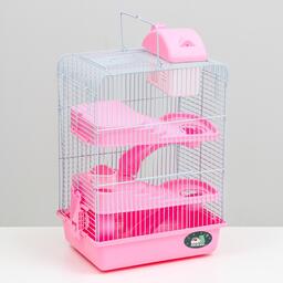 Клетка для мелких грызунов "Пижон", с наполнением, 27 х 21 х 45 см, розовая