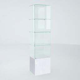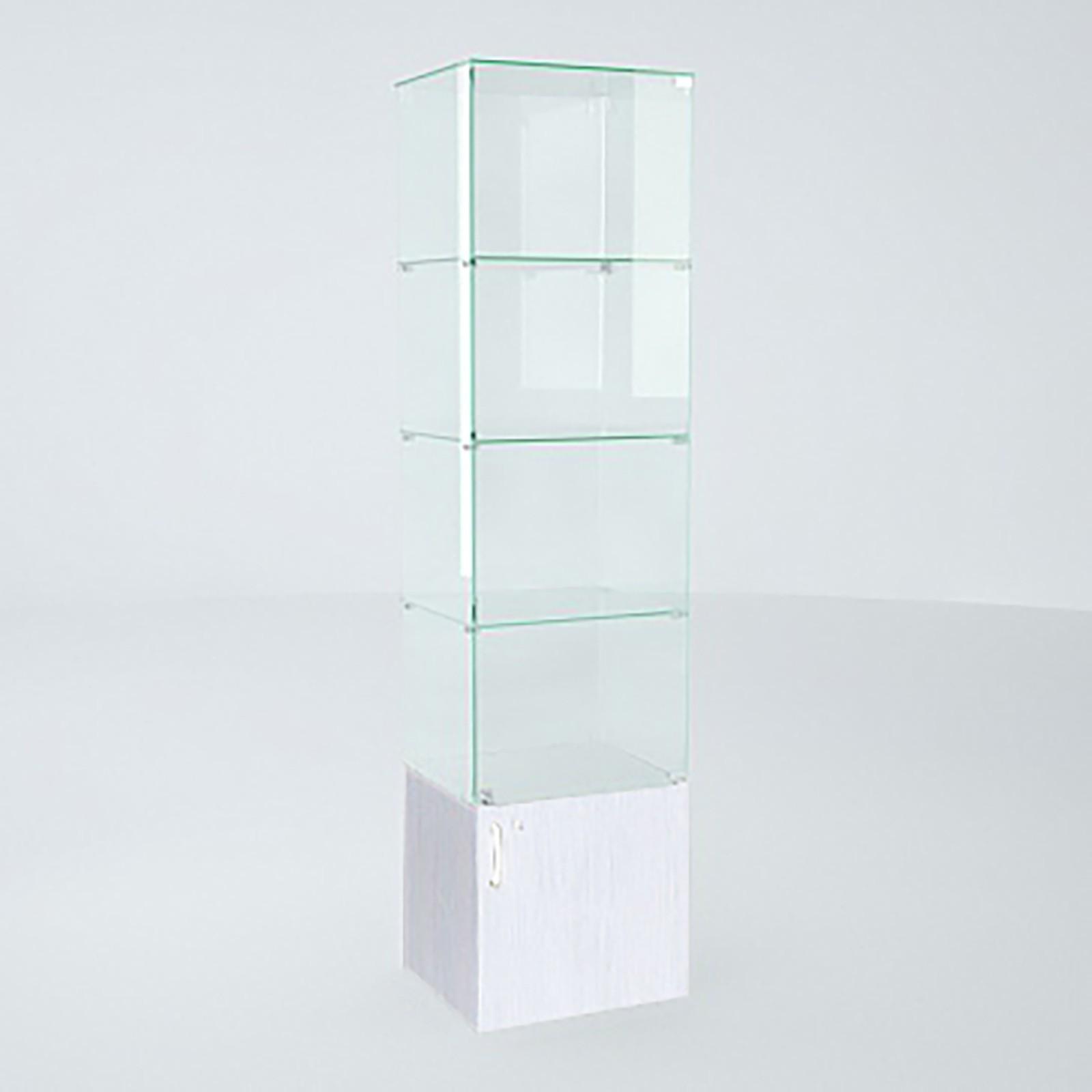 Витрина стеклянная с дверками, крыша стекло, в комплекте замки на дверках. Боковые стенки - стекло 5 мм, полки - стекло 5 мм, накопитель с дверцей - ЛДСП 500 мм.