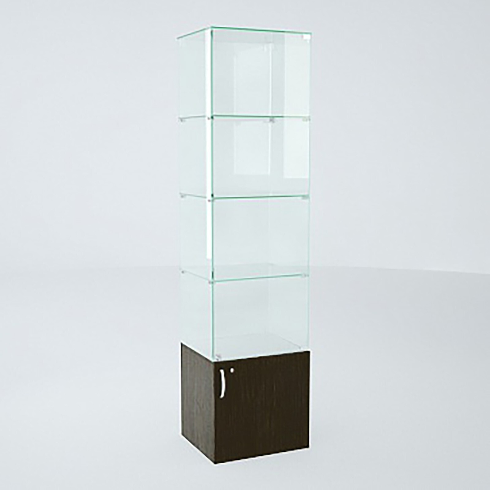 Витрина стеклянная с дверками, крыша стекло, в комплекте замки на дверках. Боковые стенки - стекло 5 мм, полки - стекло 5 мм, накопитель с дверцей - ЛДСП 500 мм.