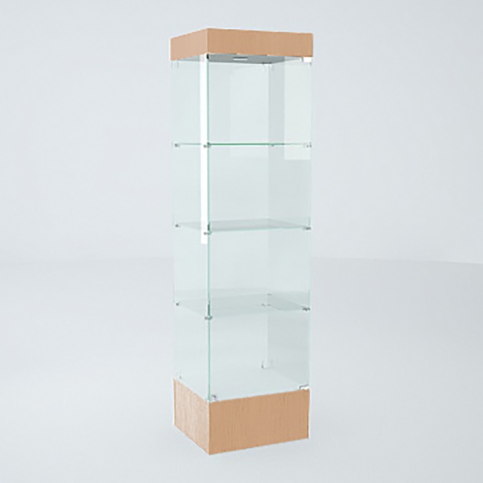 Витрина стеклянная с дверками, крыша ДСП со встроенным точечным светильником, в комплекте замки на дверках. Боковые стенки - стекло 5 мм, полки - стекло 5 мм, подиум - ЛДСП 250 мм. Полка выдерживает 5 кг равномерно распределённой нагрузки.