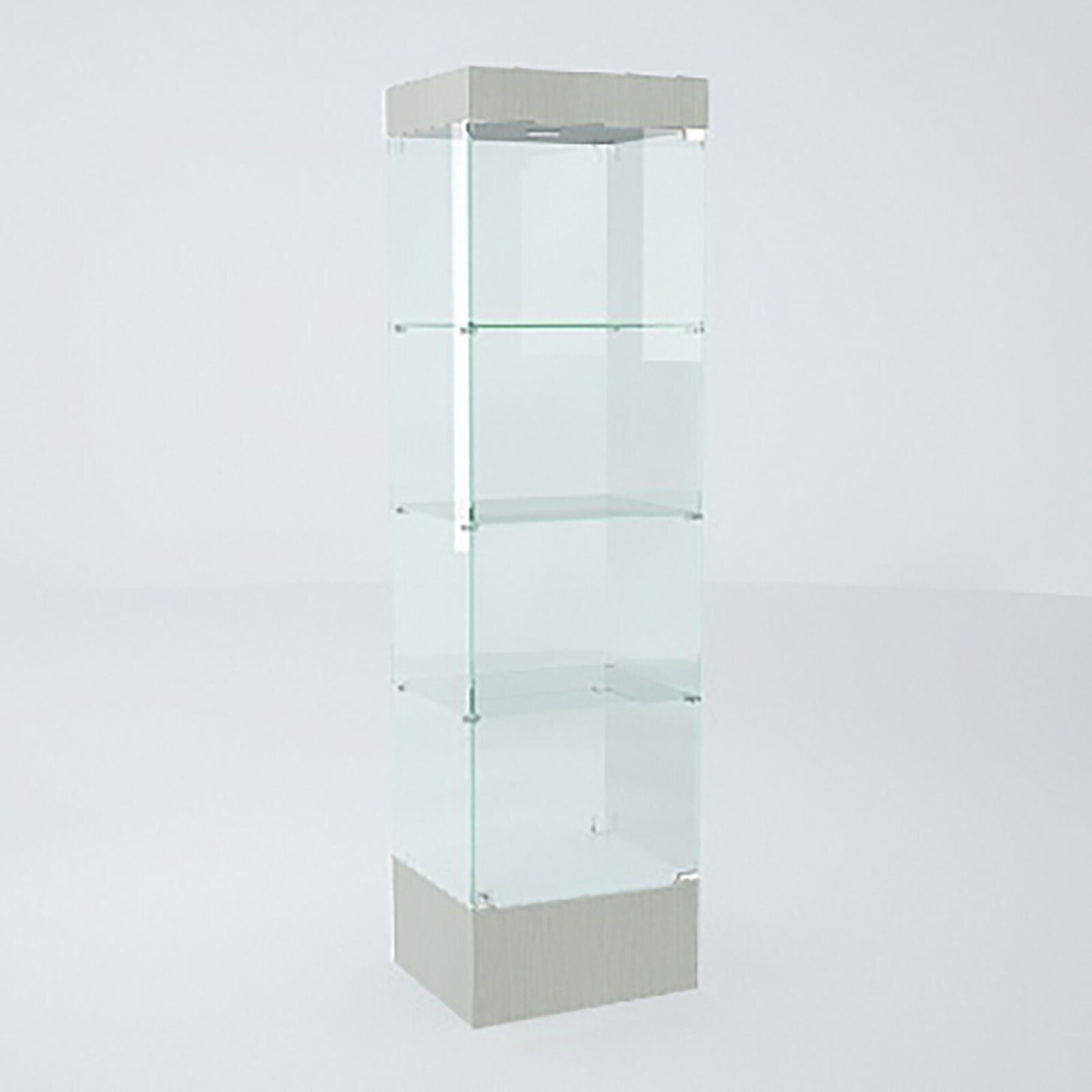 Витрина стеклянная с дверками, крыша ДСП со встроенным точечным светильником, в комплекте замки на дверках. Боковые стенки - стекло 5 мм, полки - стекло 5 мм, подиум - ЛДСП 250 мм. Полка выдерживает 5 кг равномерно распределённой нагрузки.