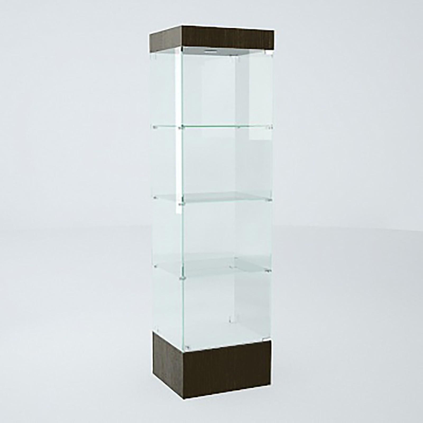 Витрина стеклянная с дверками, крыша ДСП со встроенным точечным светильником, в комплекте замки на дверках. Боковые стенки - стекло 5 мм, полки - стекло 5 мм, подиум - ЛДСП 250 мм. Полка выдерживает 5 кг равномерно распределённой нагрузки.