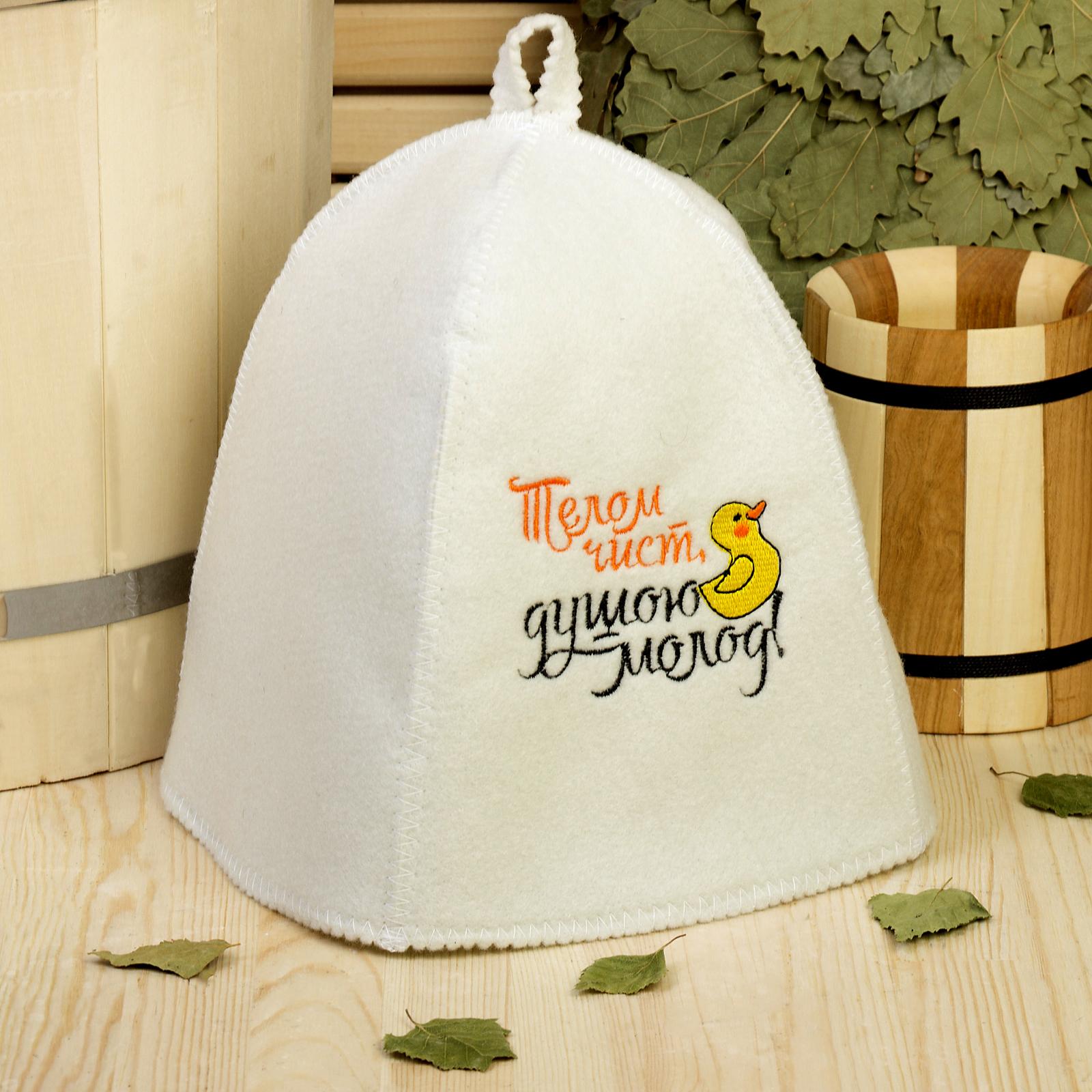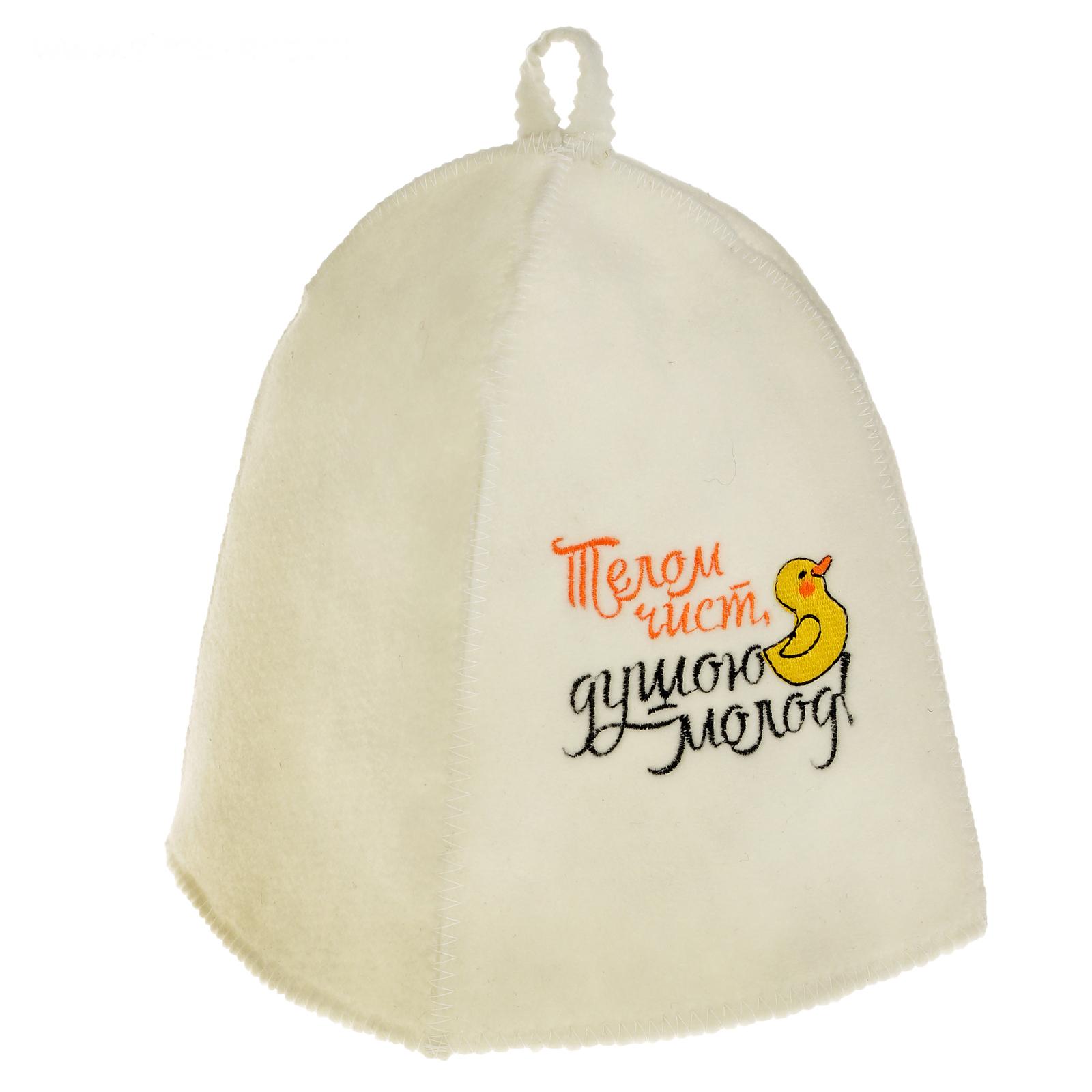 Шапка для бани с вышивкой "Телом чист, душою молод", первый сорт