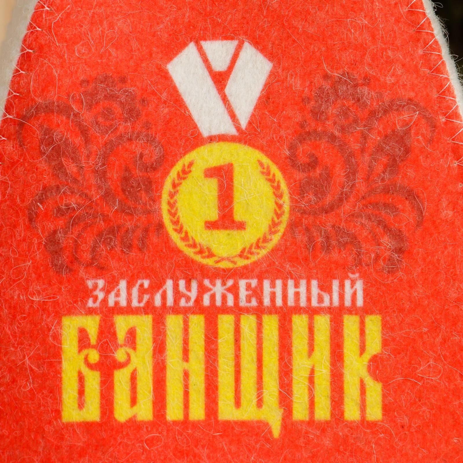 Шапка для бани с цветным клином "Заслуженный банщик"