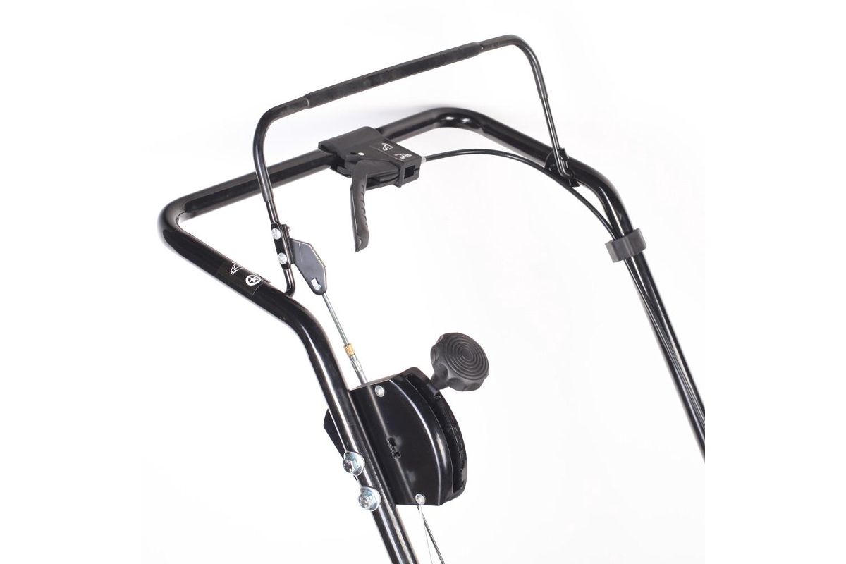 Выброс снега настраивается в пределах 190о перед агрегатом. Поверните рычаг под рукояткой для настройки.