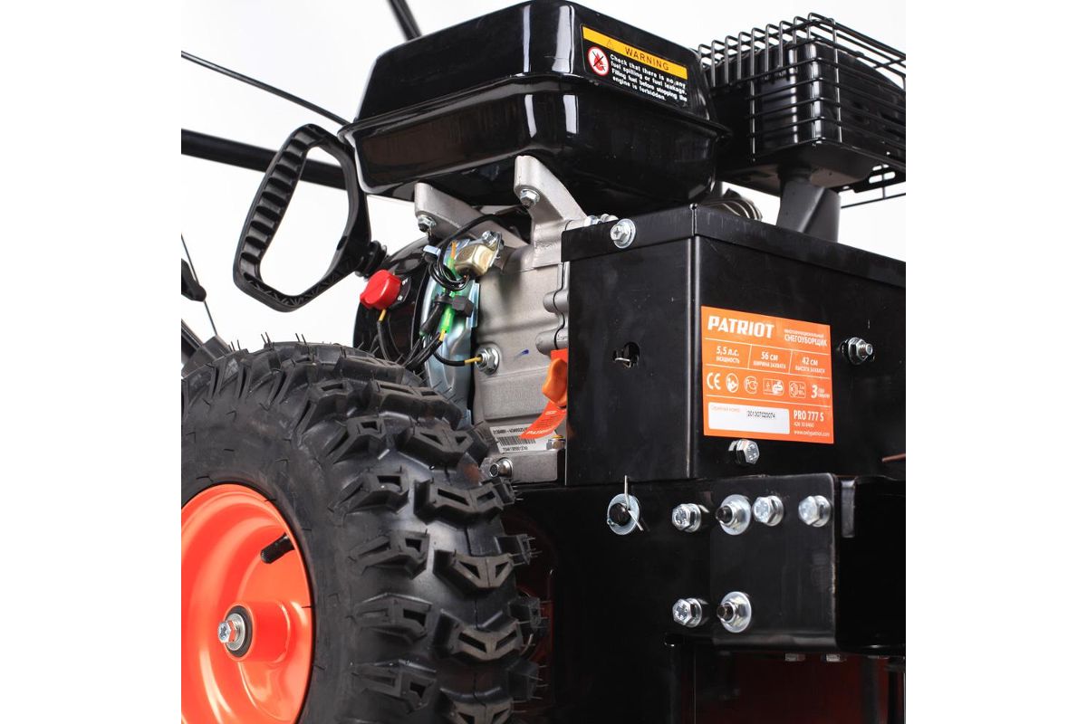 PATRIOT PRO 777 S – универсальная уборочная машина. Зимой используется для уборки снега, летом – для подметания улицы. Мощность двигателя 5,5 л.с. Расчищает дорожки 560 мм шириной. Захватывает снежные наносы до 420 мм высотой. Пригодится для уборки автостоянок, дорожек, придомовых территорий.