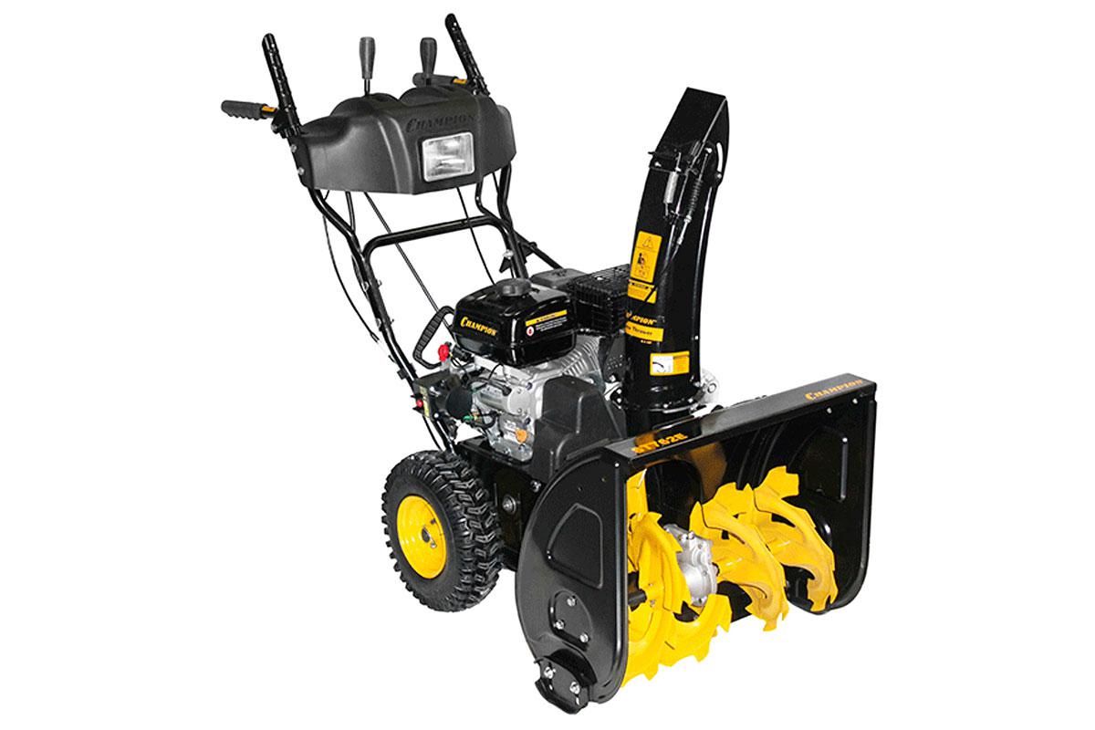 CHAMPION ST762E - бензиновый снегоуборщик для расчистки придомовых зон, парковок, подъездных дорожек и т.д. За счет функции выброса снега его можно использовать в ограниченном пространстве. В основе Champion G200HE 4-тактный двигатель мощностью 6.5 л.с.