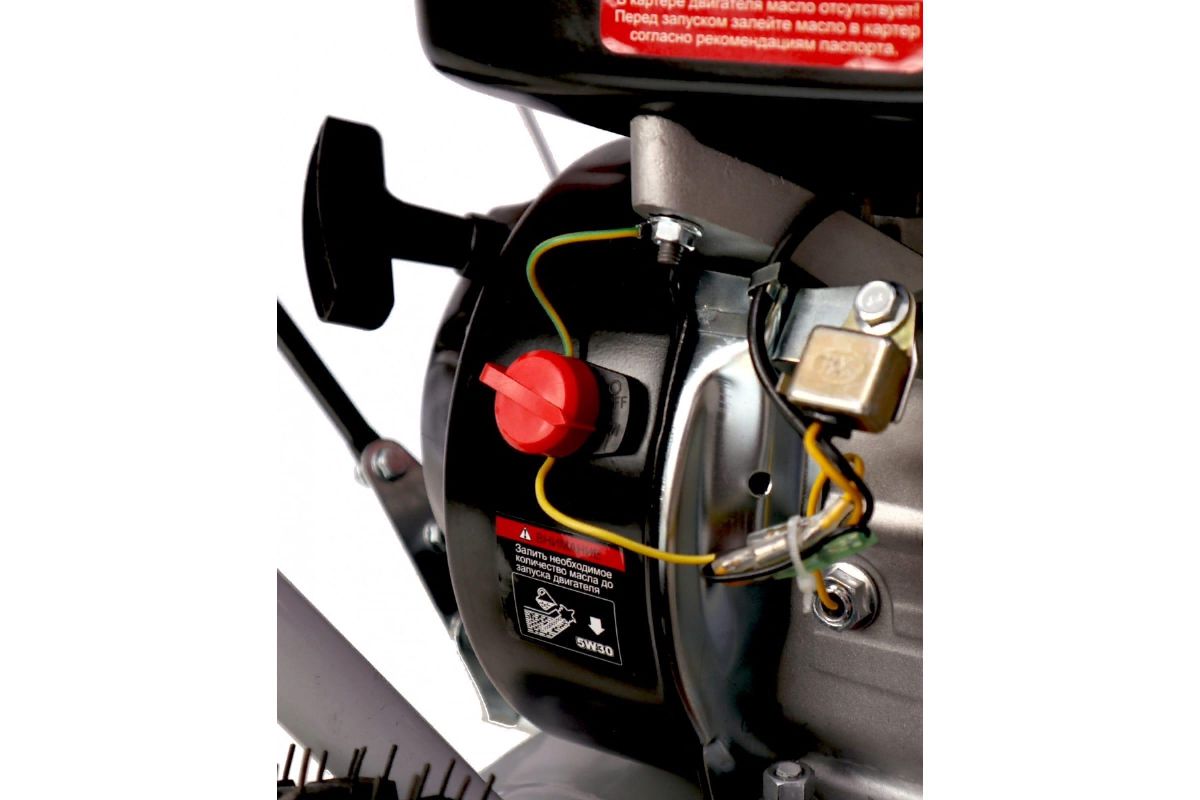 Модель оборудована 4-х тактным бензиновым двигателем с верхним расположением клапанов. Он адаптирован для работы при низких температурах, имеет достаточную мощность, чтобы свободно справляться со всеми нагрузками, связанными с рабочим процессом снегоуборщика и его передвижением. Снегоуборщик оснащен колесами с глубоким протектором, они обеспечивают высокую тягу и упрощают перемещение.