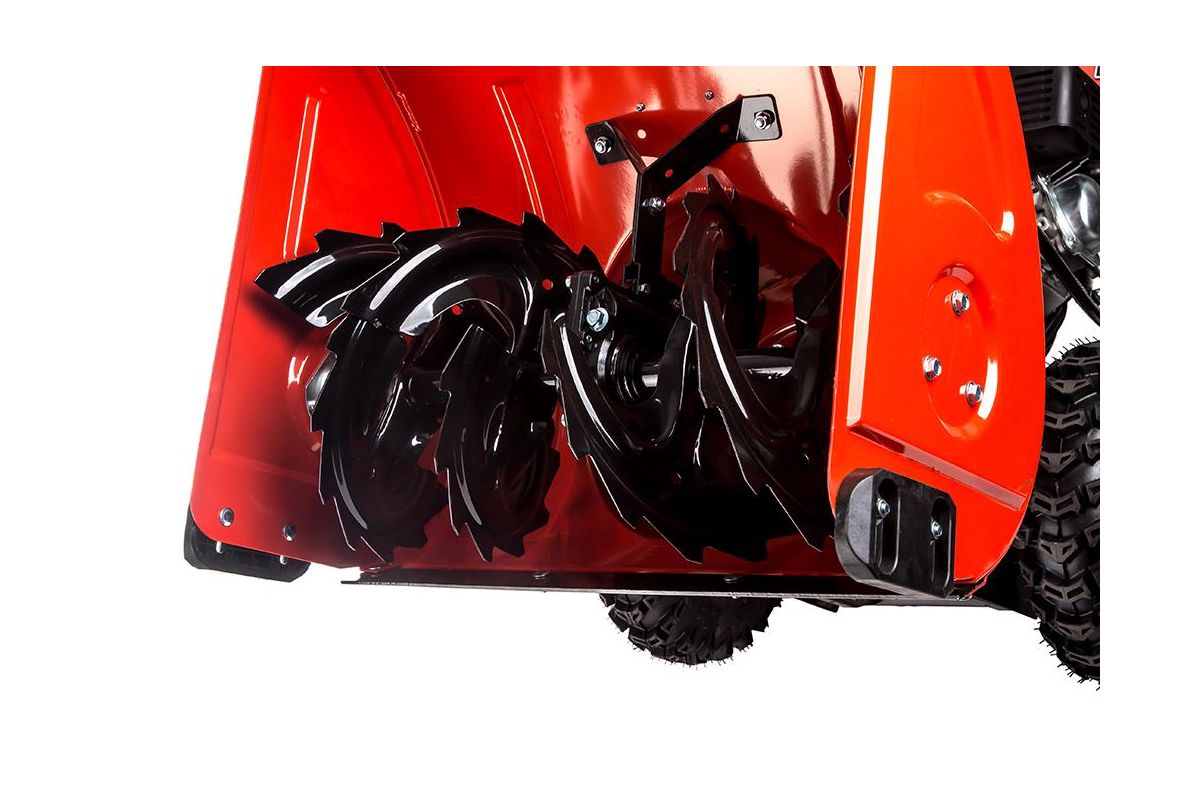 - Зубчатый металлический шнек. Перемалывает любой снег. Устройство справляется с уборкой свежего снега, слежавшихся и обледенелых заносов;