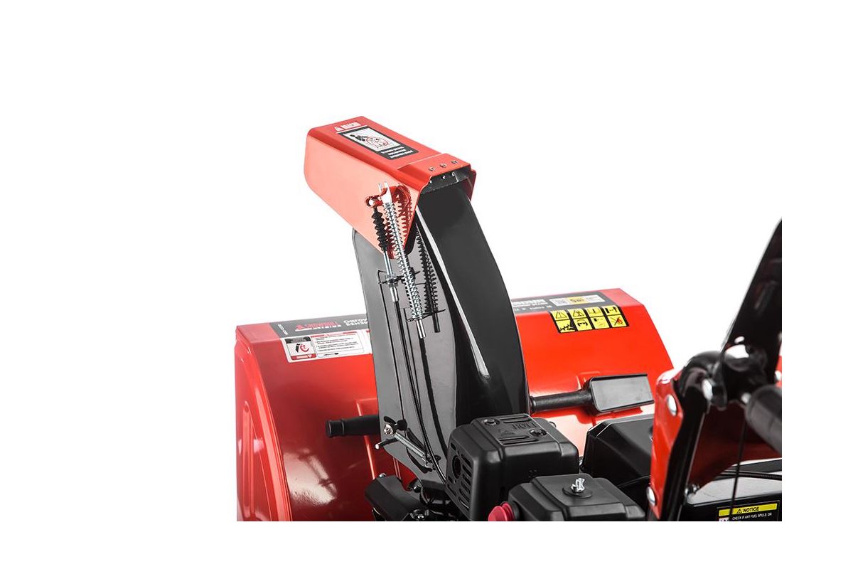 - Настройка направления выброса. В радиусе 190°. Установка нужного угла поворотом рычага;