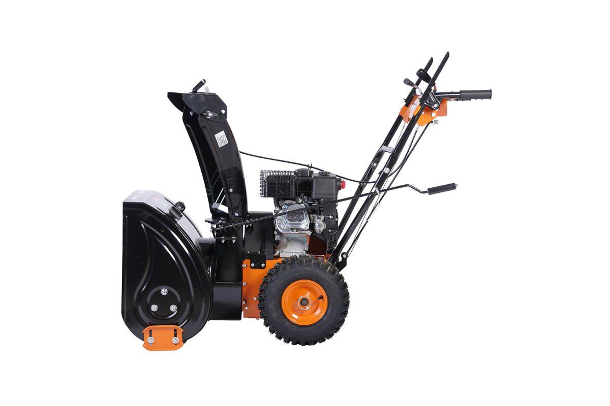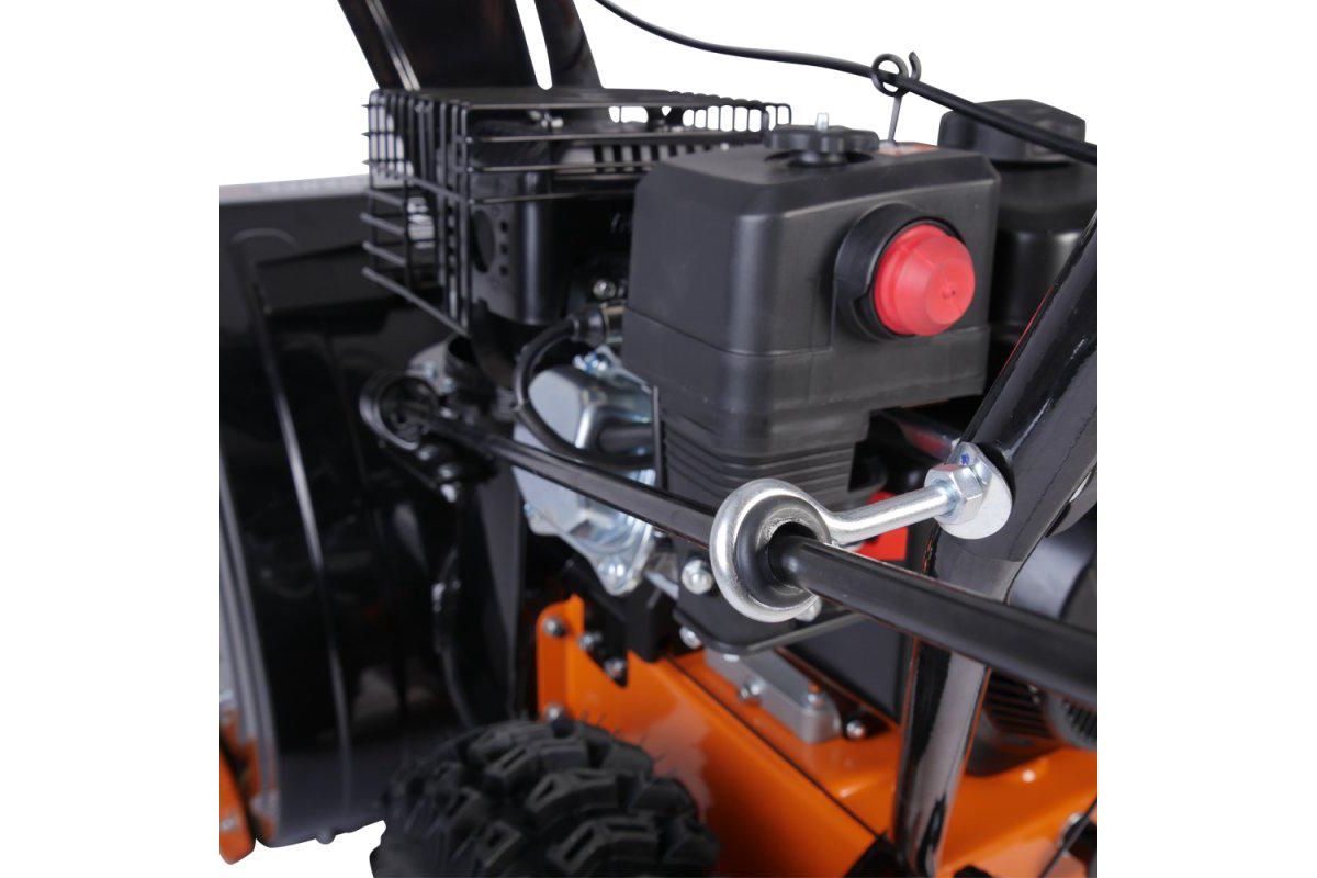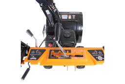 Угол и направление желоба регулируются. Дальность выброса снега регулируется.