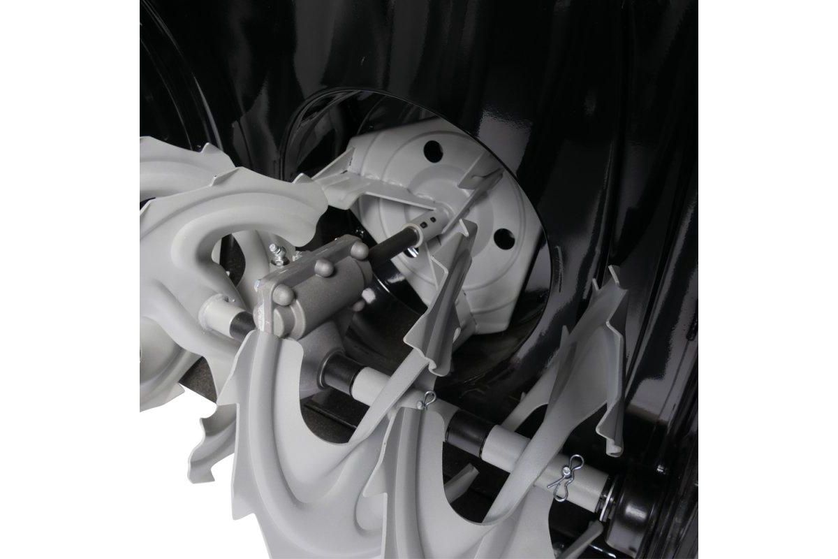 Система шнеков двухступенчатая. Металлические зубья эффективно разбивают плотные сугробы.