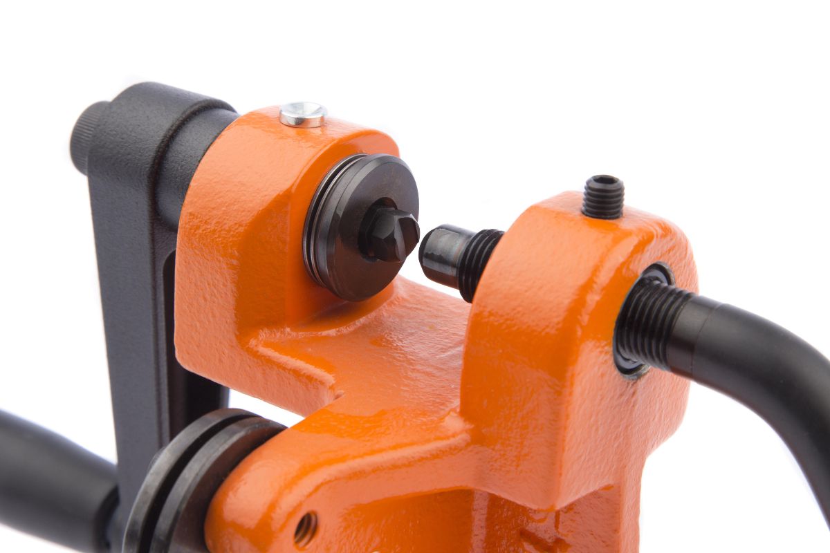 Для комфорта оператора и высокой точности заклепывания аппарат оборудован двумя направляющими роликами.