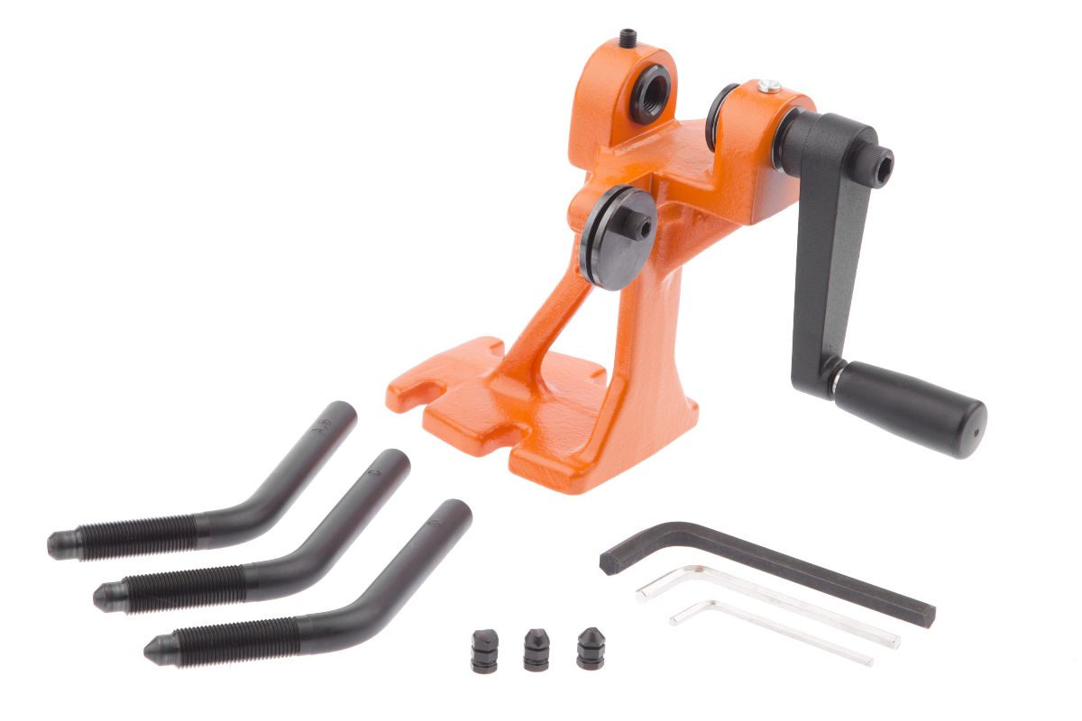 Такой клепальный станок позволяет быстро и надежно соединить любую пильную цепь.