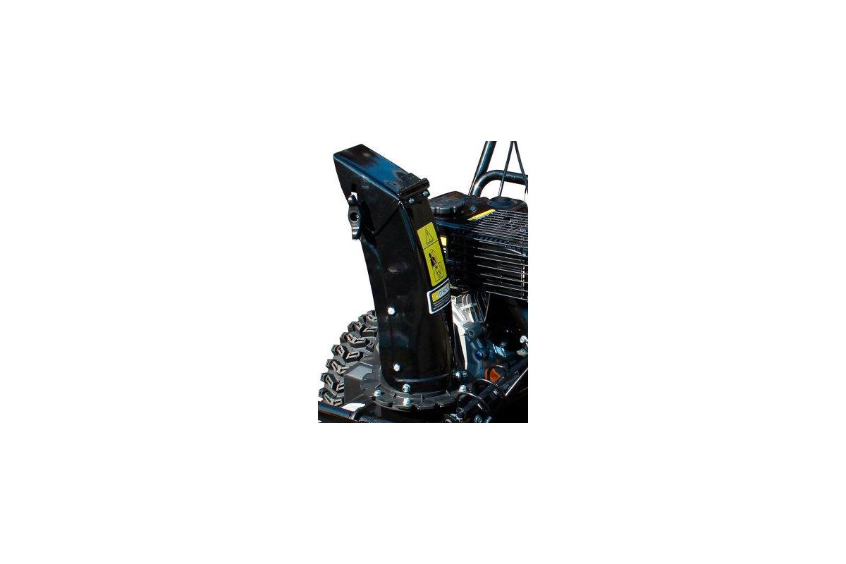 В модели использован двухступенчатый шнек-вентилятор для выброса снега. Желоб поворачивается на 180º, поэтому снег можно отбрасывать практически в любом направлении на расстояние до 13 м. Шнек можно приподнять или опустить ближе к земле. Дальность выброса также регулируется вручную. Ширина обработки за один проход – 56 см, высота забора – 42 см.