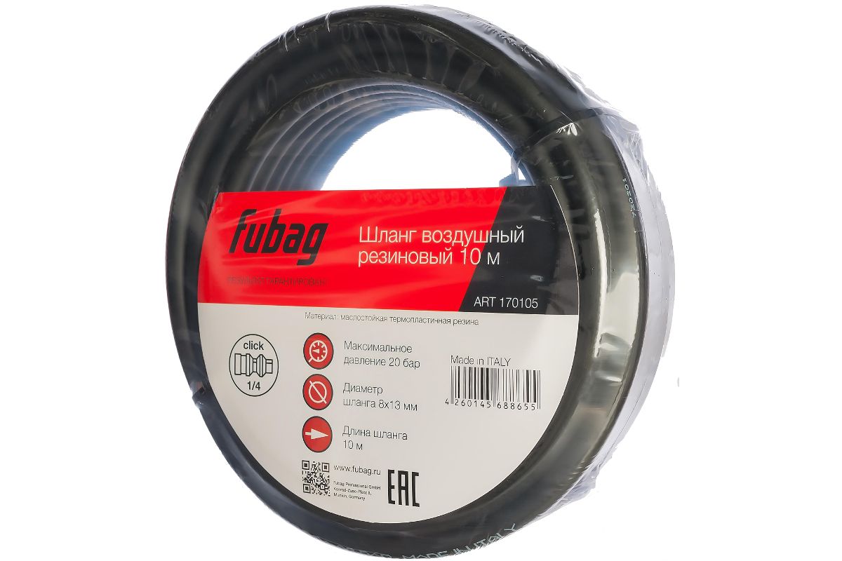 Шланг FUBAG 170105 с фитингами рапид маслостойкая термопластичная резина 20бар 8x13мм 10м