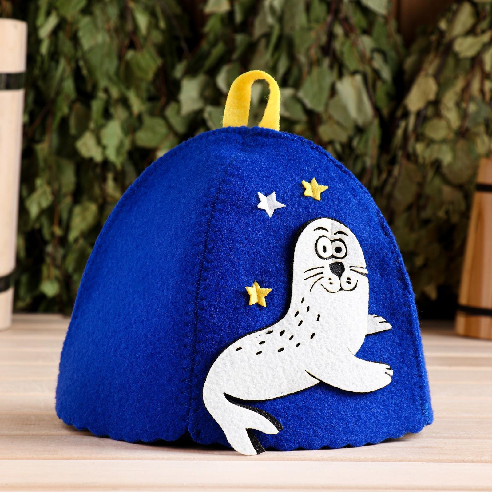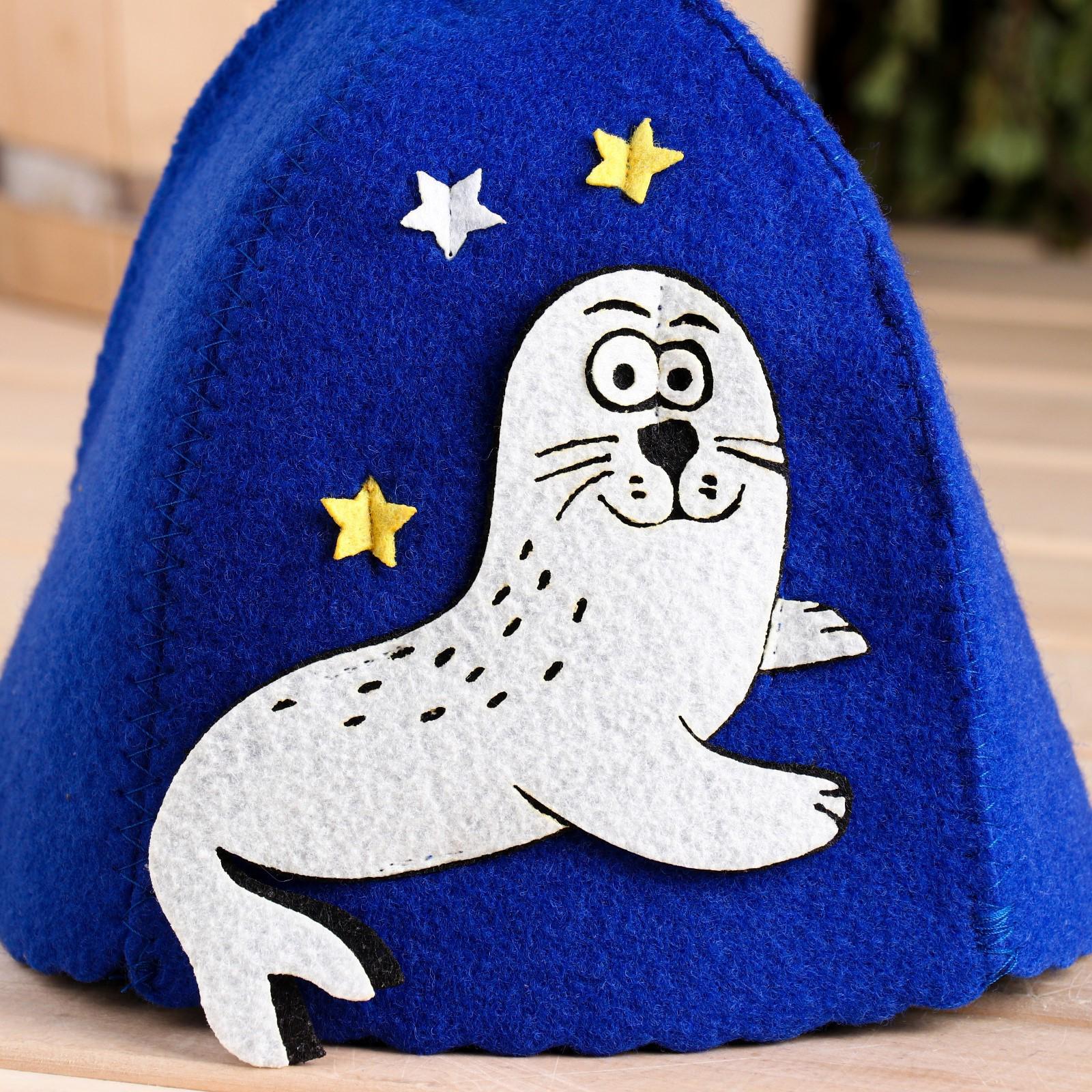 Шапка для бани с аппликацией "Игривый Тюлень"