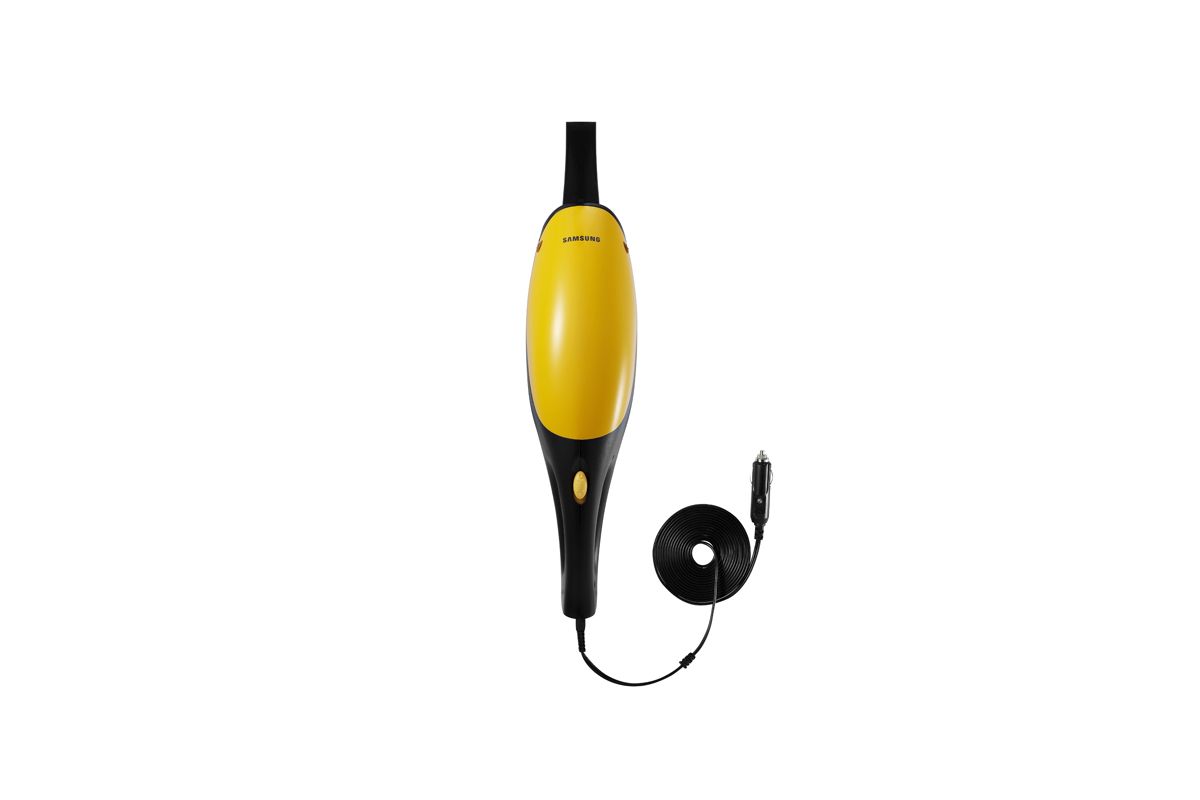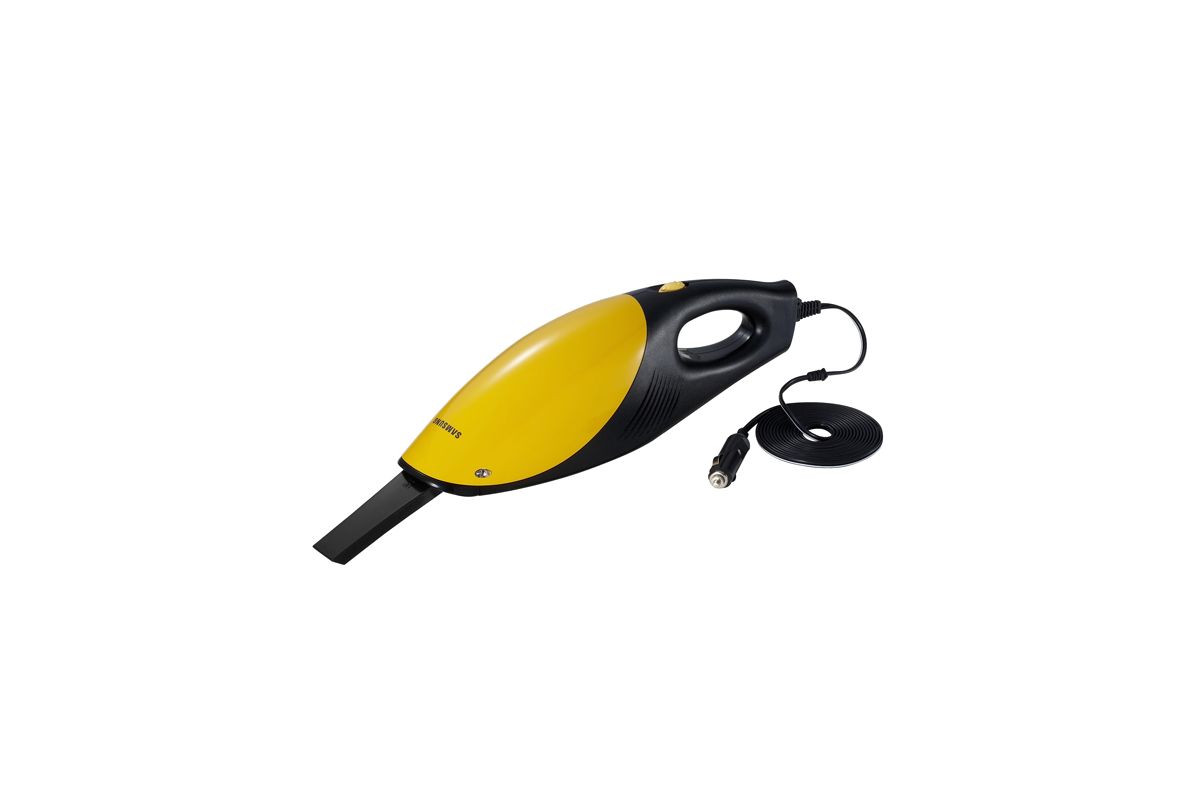 Автомобильный пылесос. Питание от прикуривателя. Напряжение 12 Вольт, мощность 60/20Вт, вес 690 г, 200 мл, щелевая насадка, моющийся контейнер для пыли, желтый с черным