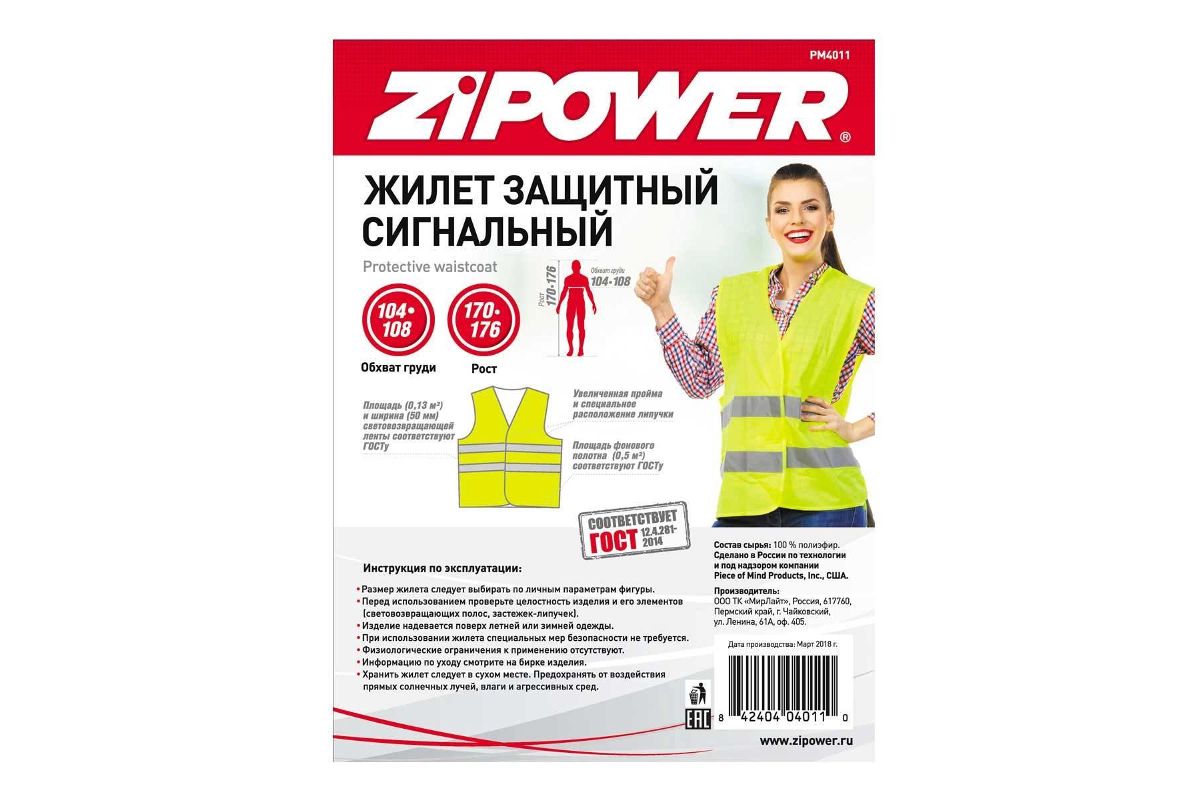 Жилет ZIPOWER PM4011 защитный светоотражающий (плотность материала 165 г/м ткань «сигнал»)