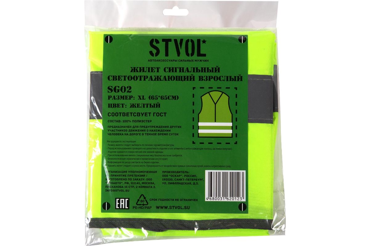 Жилет STVOL SG02 сигнальный светоотражающий взрослый р.xl 65х65см желтый