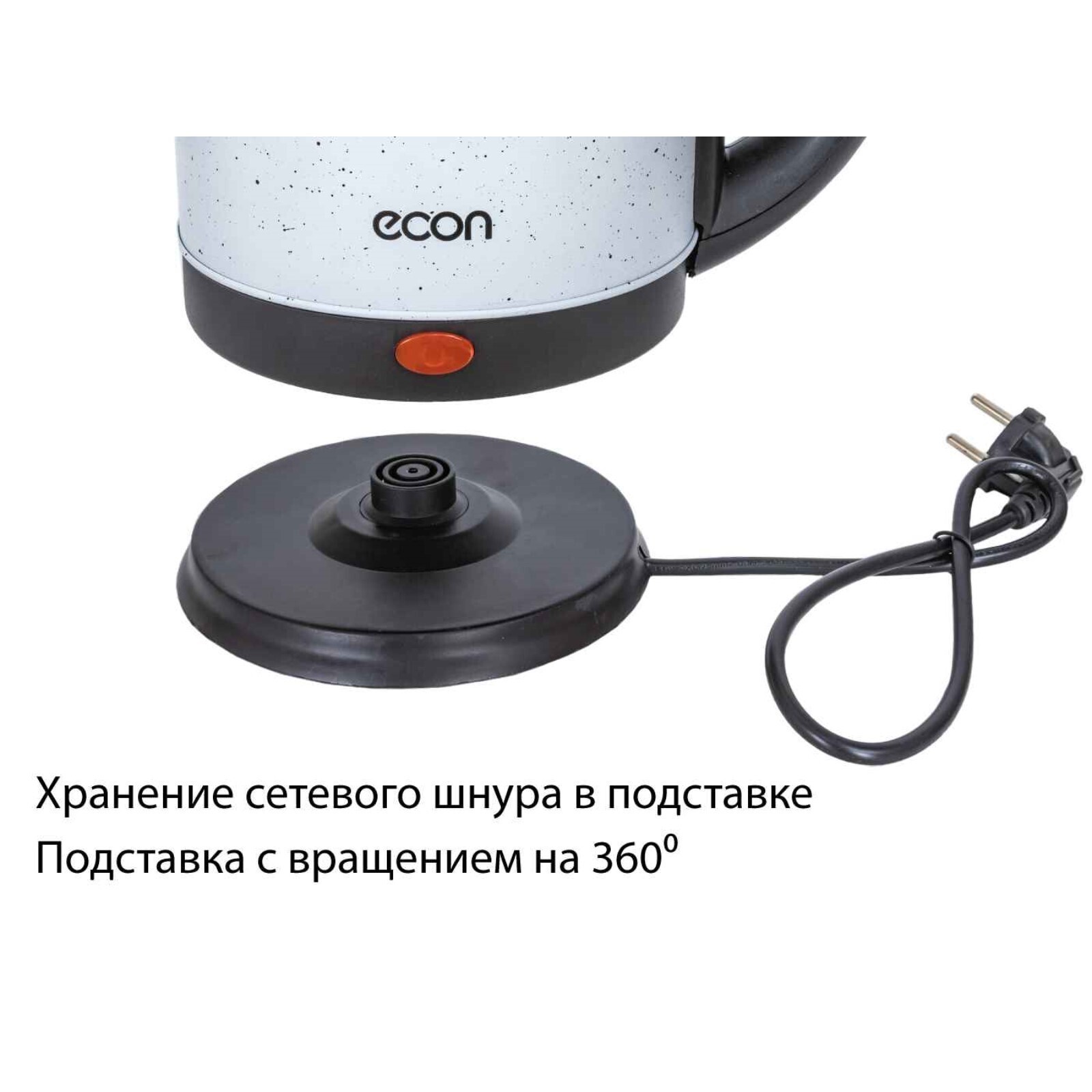 Чайник электрический Econ ECO-1890 KE, 1500 Вт, нержавеющая сталь, 1.8 л, белый
