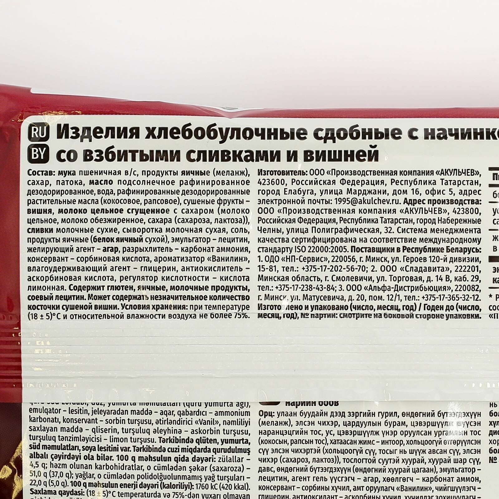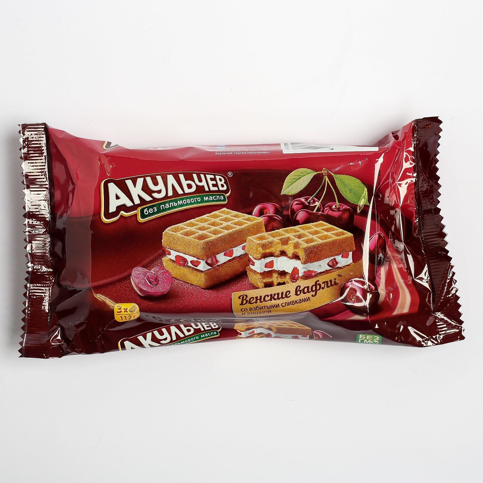 Вафли мягкие "АКУЛЬЧЕВ" со взбитыми сливками и вишней, 112 г
