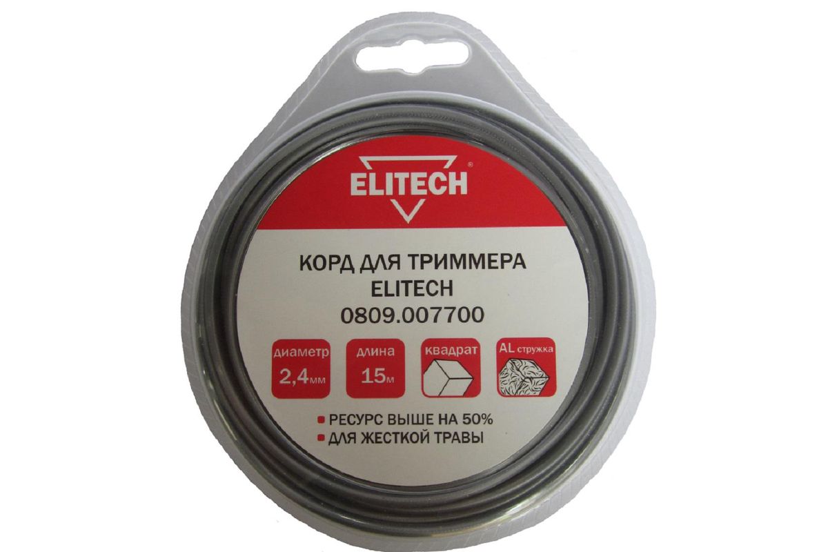 Леска ELITECH 0809.007700 Леска, 2.4мм, 15м, квадрат, с алюминиевой стружкой, блистер