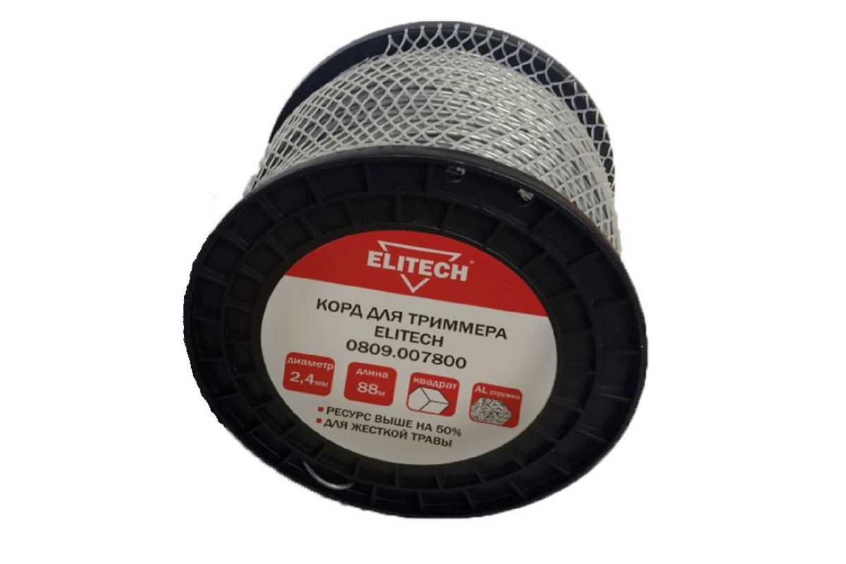Леска ELITECH 0809.007800 Леска, 2.4мм, 88м, квадрат, с алюминиевой стружкой, катушка