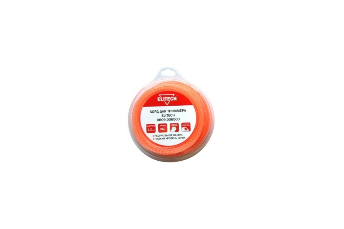 Леска для триммеров ELITECH 809,0065 3.0мм 56м би-материал витой квадрат блистер Леска, 3.0мм, 56м, би-материал, витой квадрат, блистер