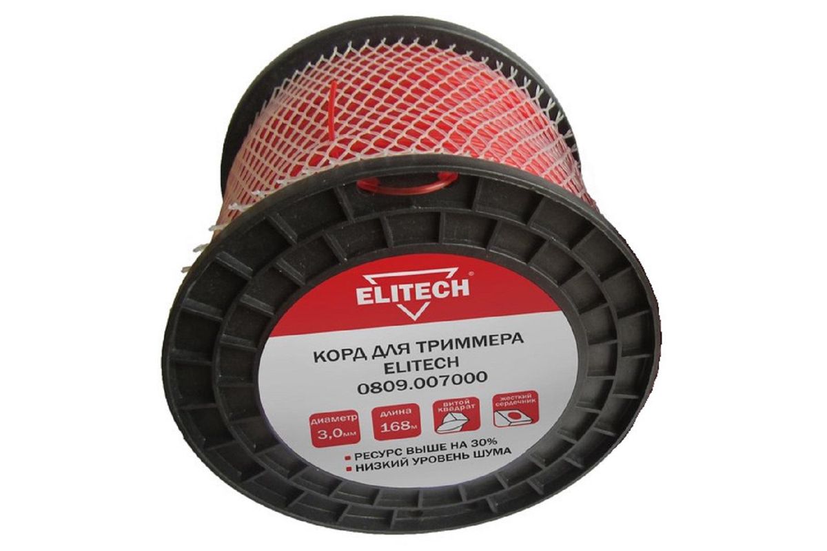 Леска ELITECH 0809.007000 Леска, 3.0мм, 168м, би-материал, витой квадрат, катушка