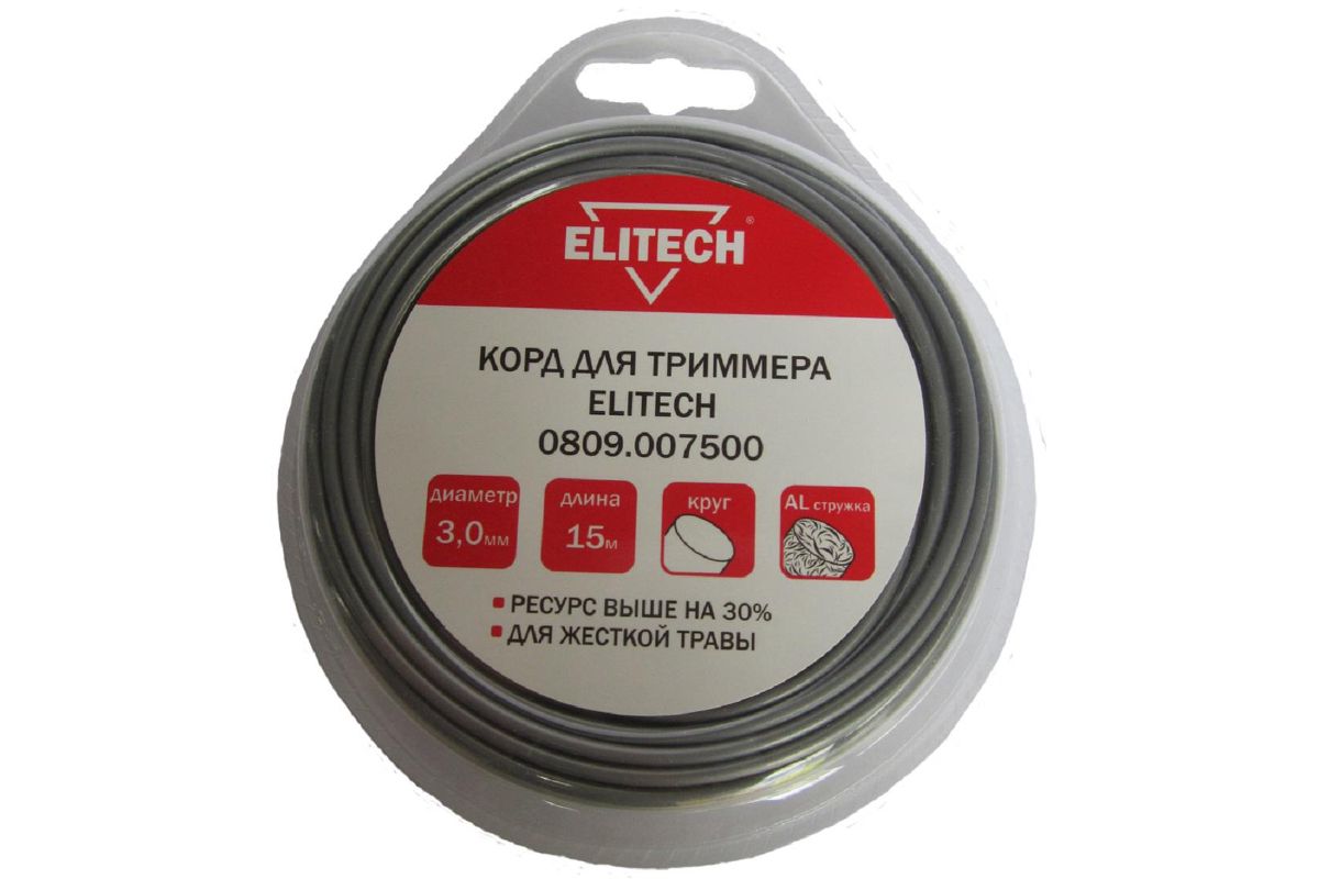 Леска ELITECH 0809.007500 Леска, 3.0мм, 15м, круг, с алюминиевой стружкой, блистер