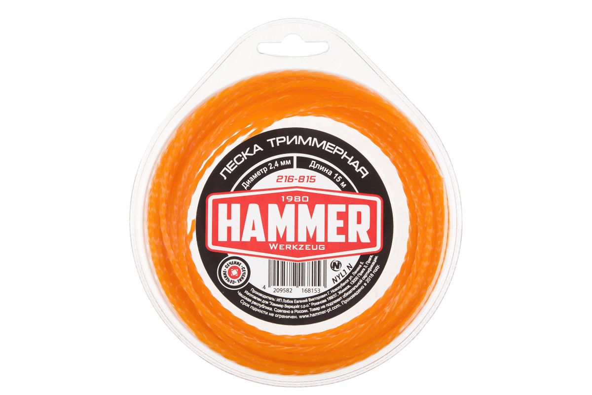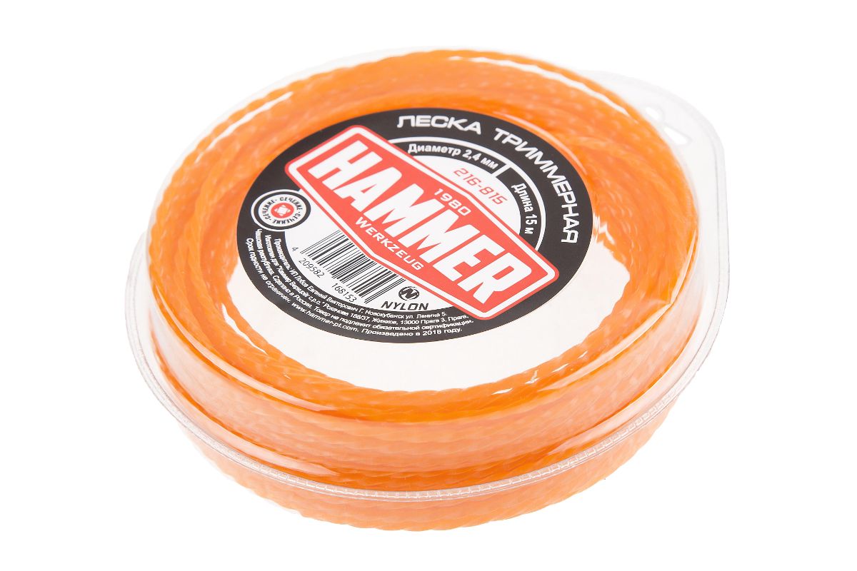 Леска триммерная Hammer 216-815 2.4мм 15м витой квадрат в блистере