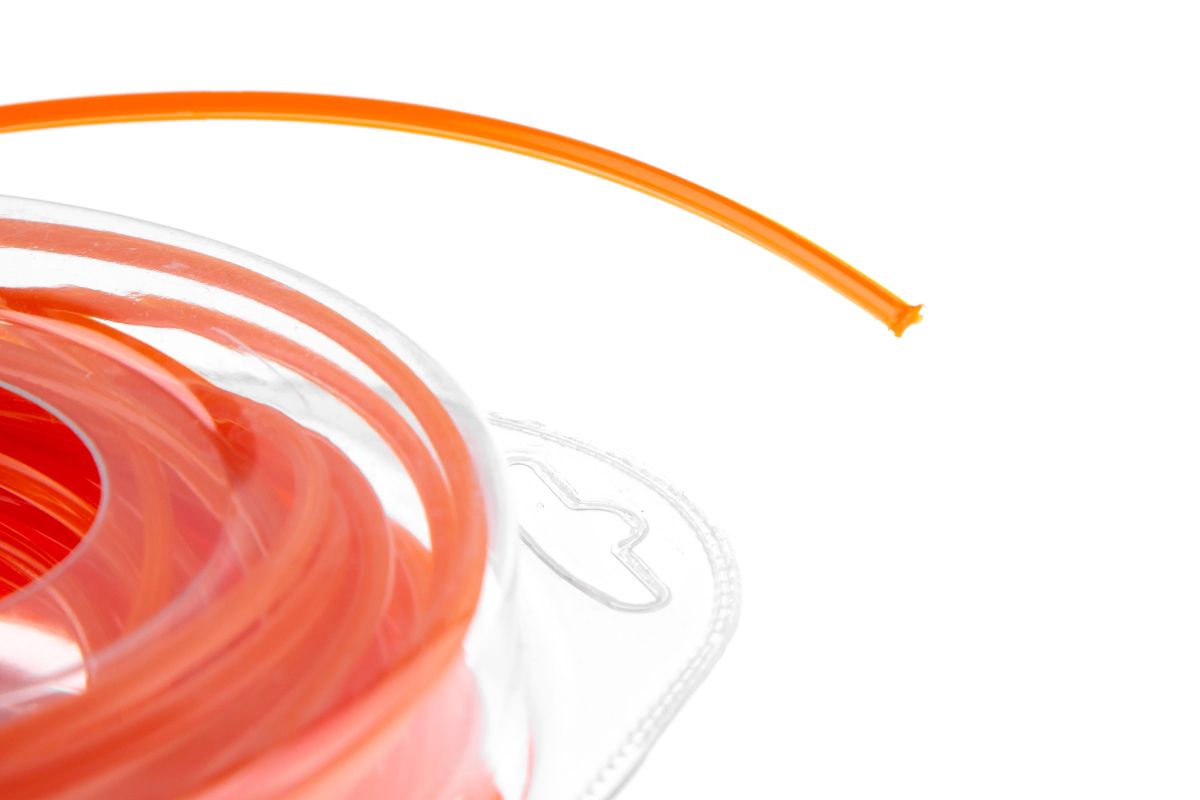 Леска изготовлена из высокопрочного нейлона и применяется для постоянного кошения травы и мелкого кустарника.