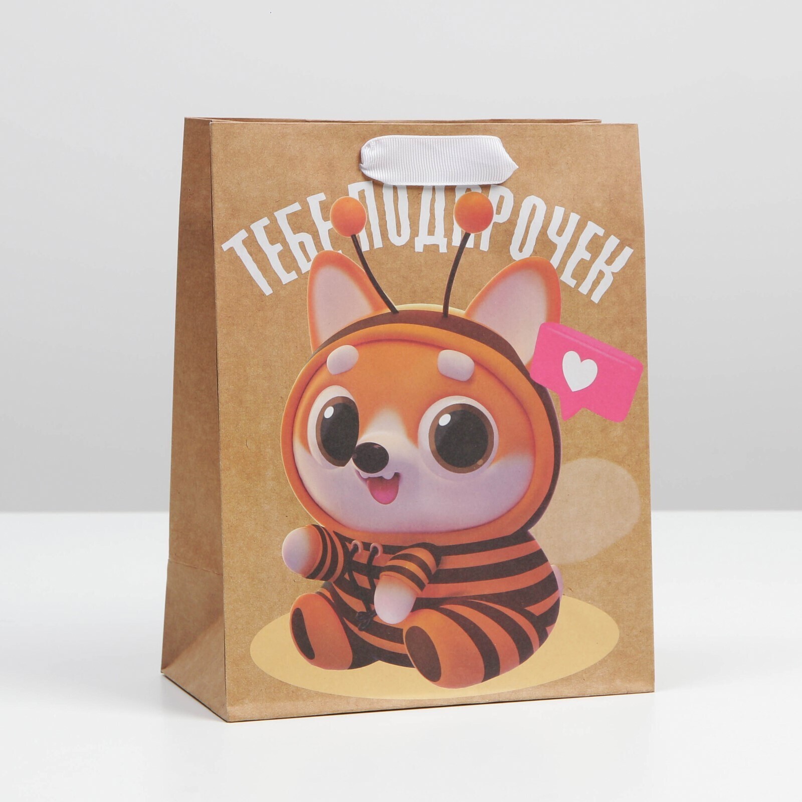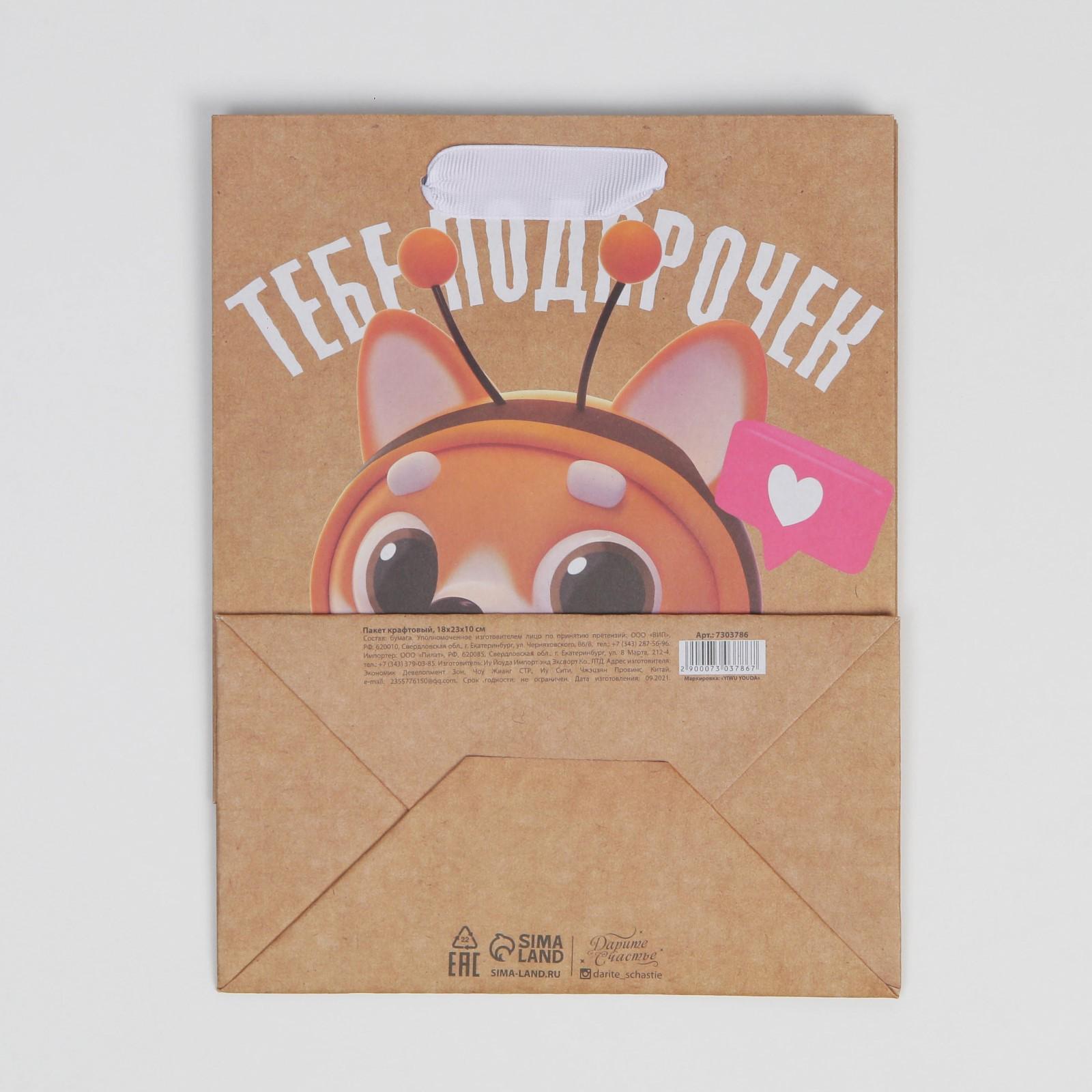 Пакет крафтовый вертикальный «Тебе подарочек», MS 18 × 23 × 8 см