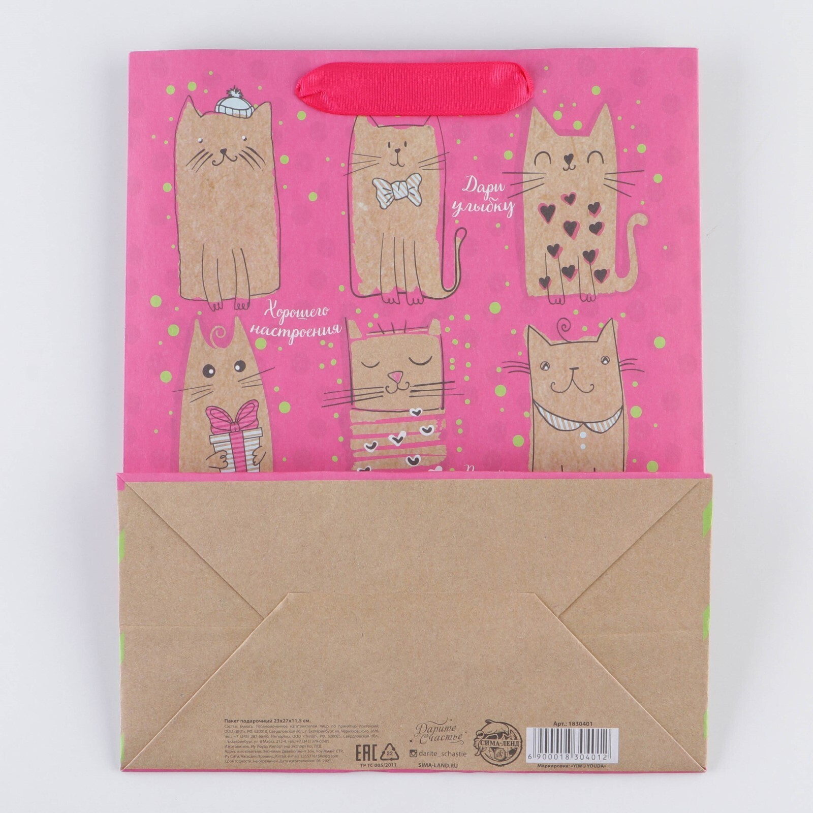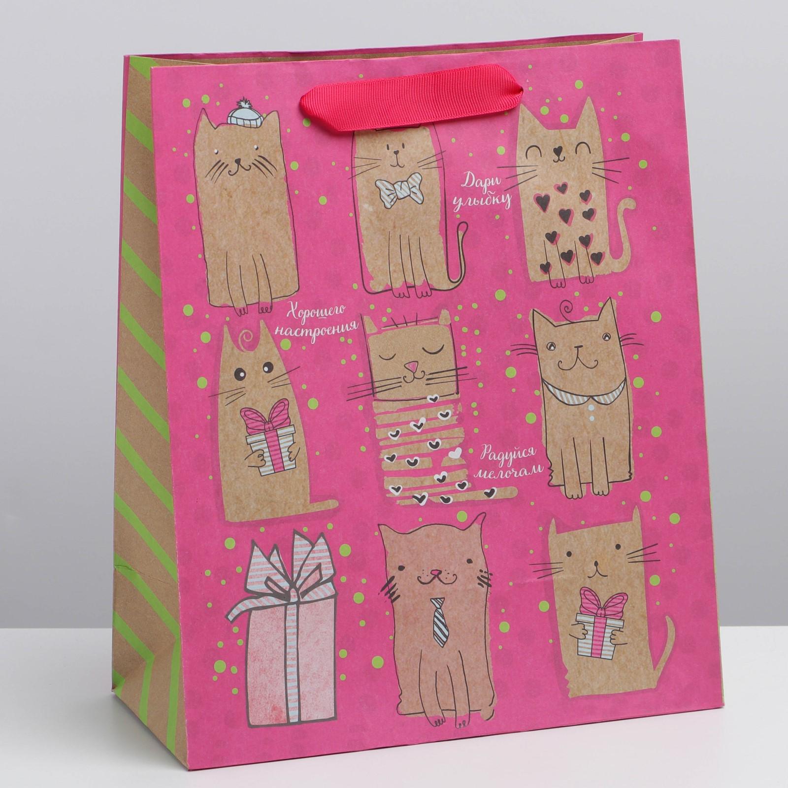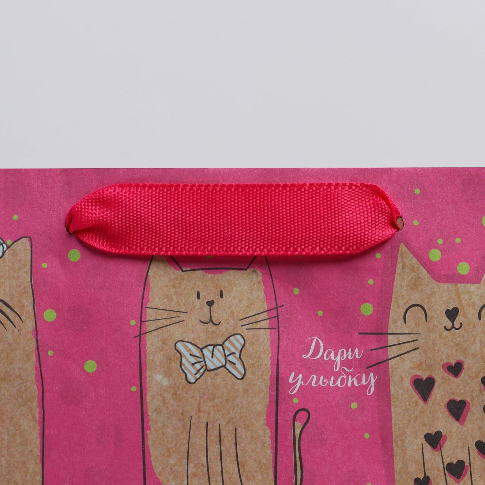 Пакет крафтовый вертикальный «Милые котики», ML 23 × 27 × 8 см