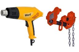 В состав набора входят: Тележка приводная Zitrek GCL-1E 004-4492 1т/6м, Термопистолет WERT EHG 1800 1800Вт, 250/500л/м, 350/550°C, 4 насадки, 0.75кг