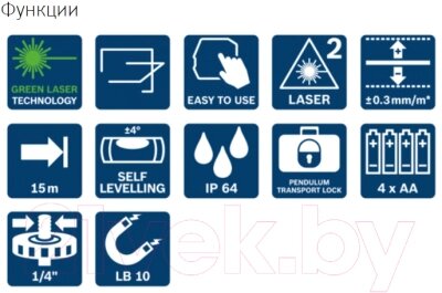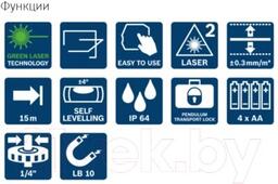 • Комплектация карман, элемент питания, универсальное крепление, штатив, лазерная мишень (отражатель)