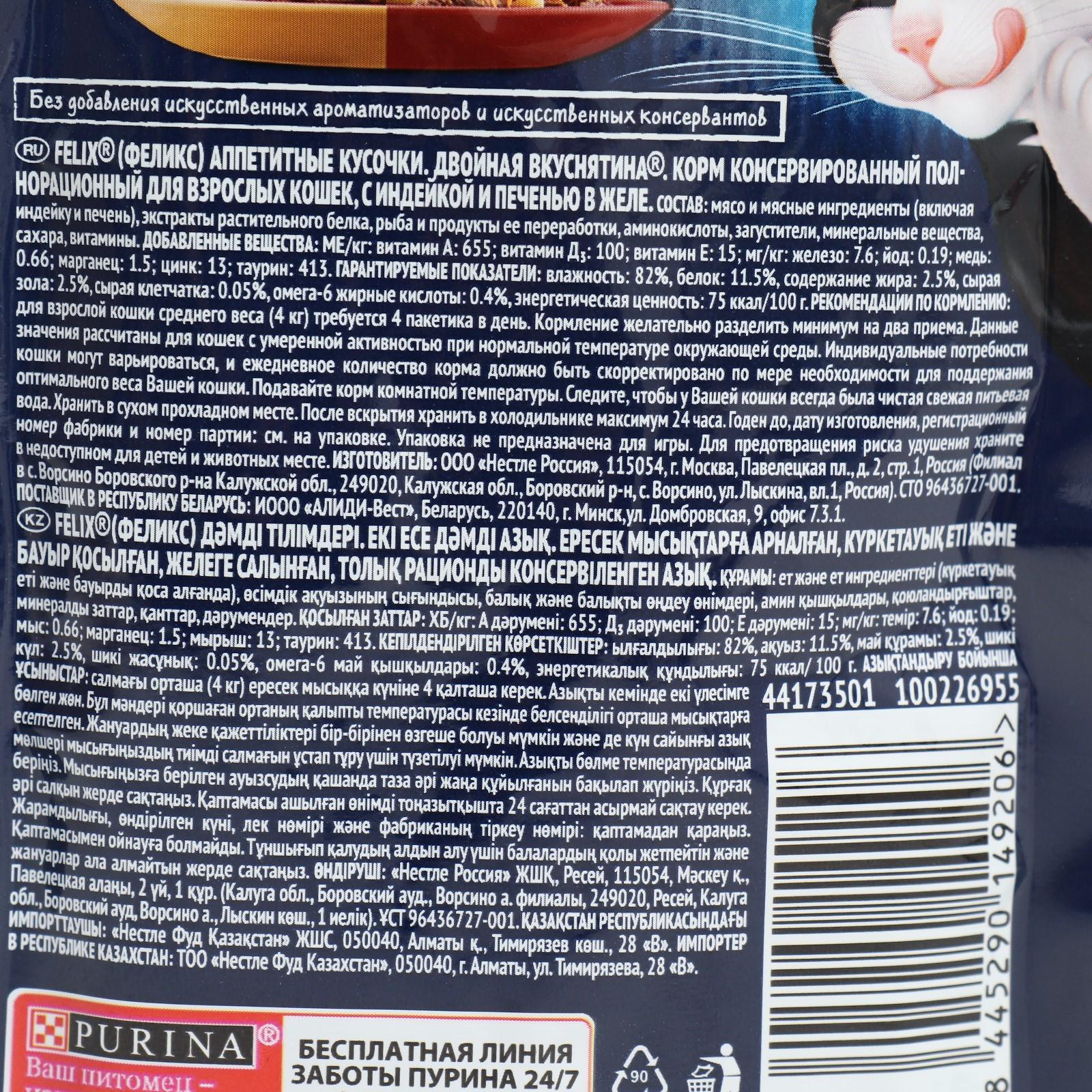 Влажный корм FELIX "Двойнная вкуснятина" для кошек, индейка/печень в желе, пауч 75 г