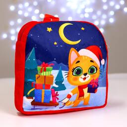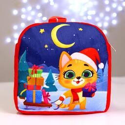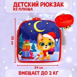 Рюкзак детский плюшевый «Котик в новогодней шапочке», 26×24 см