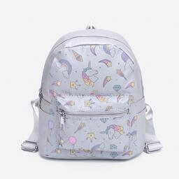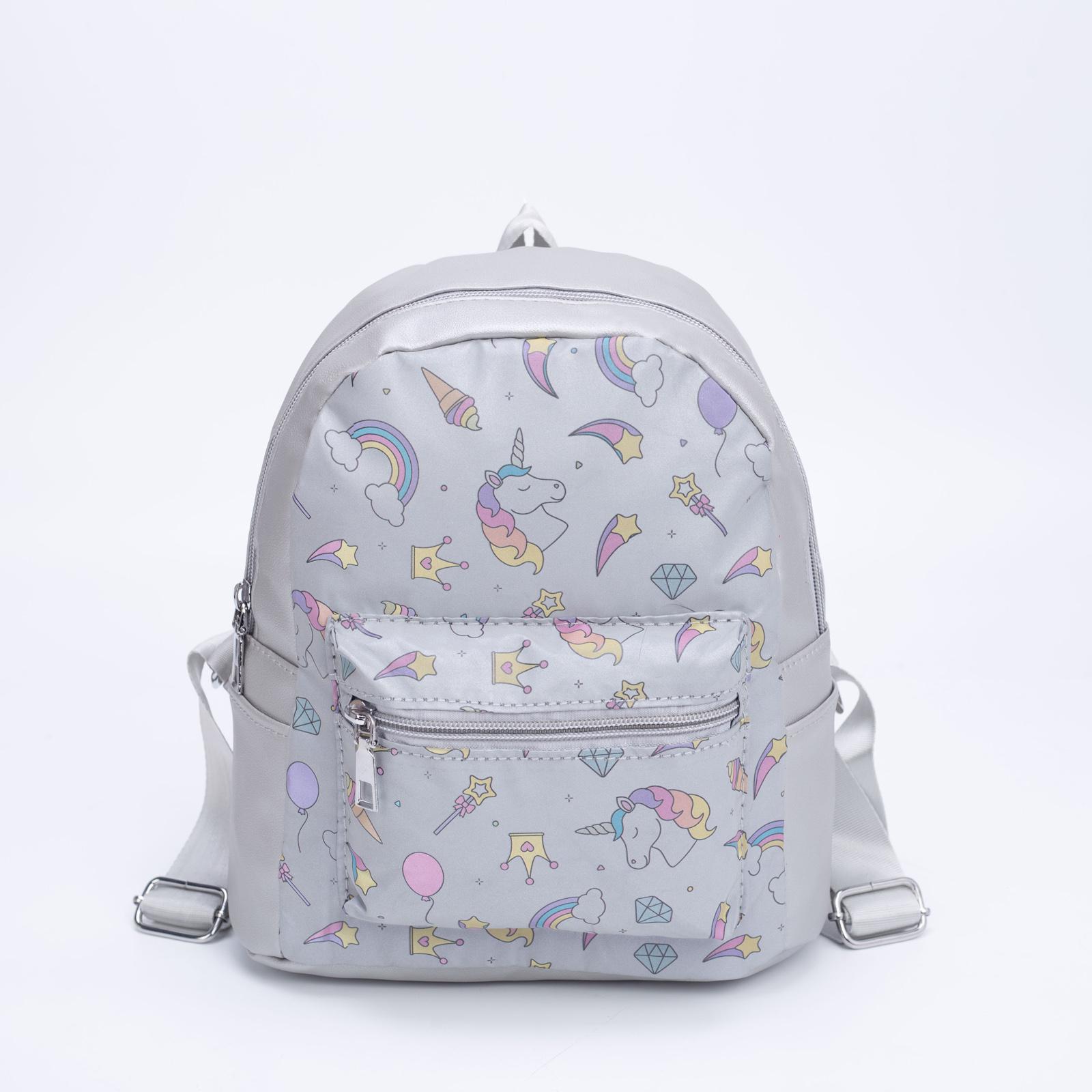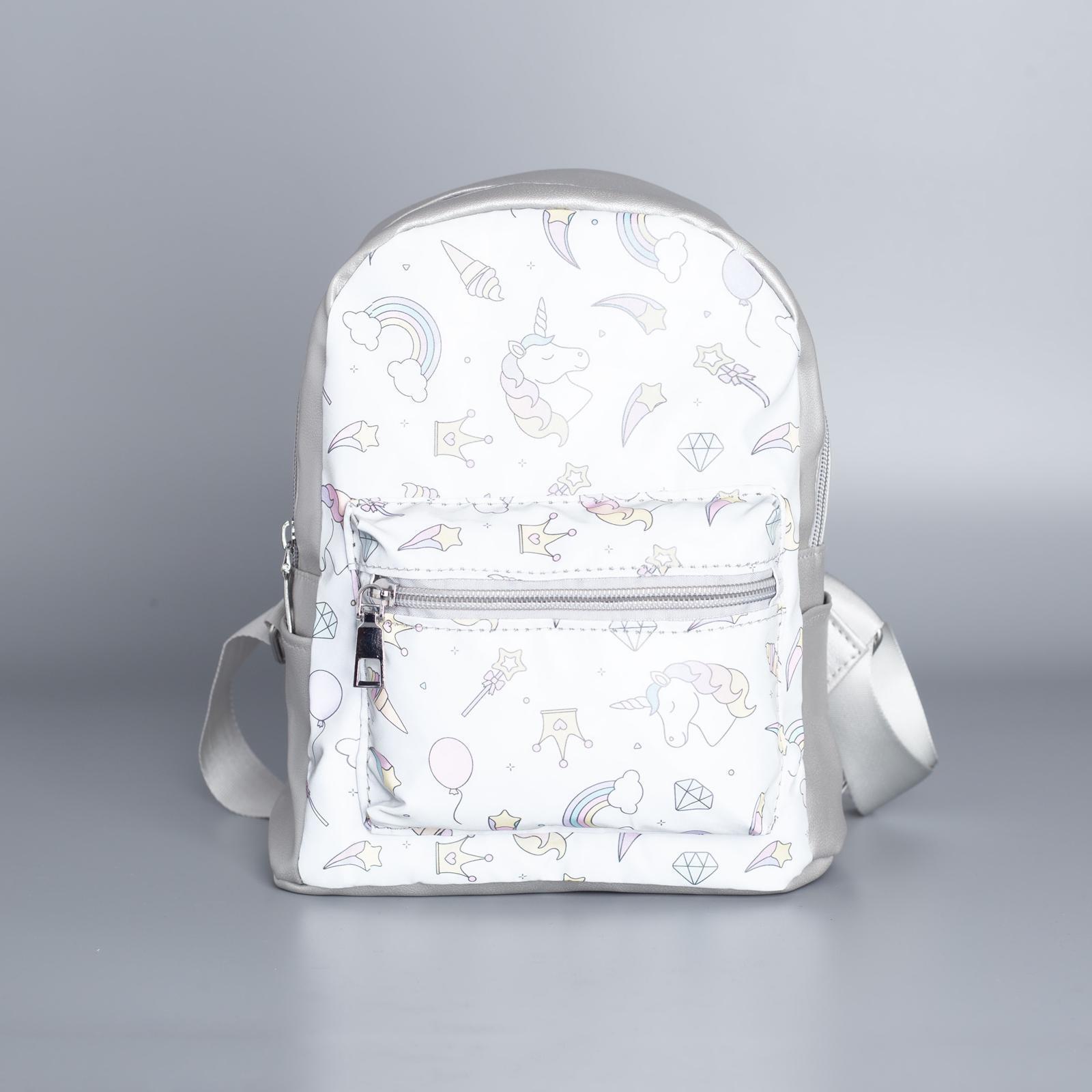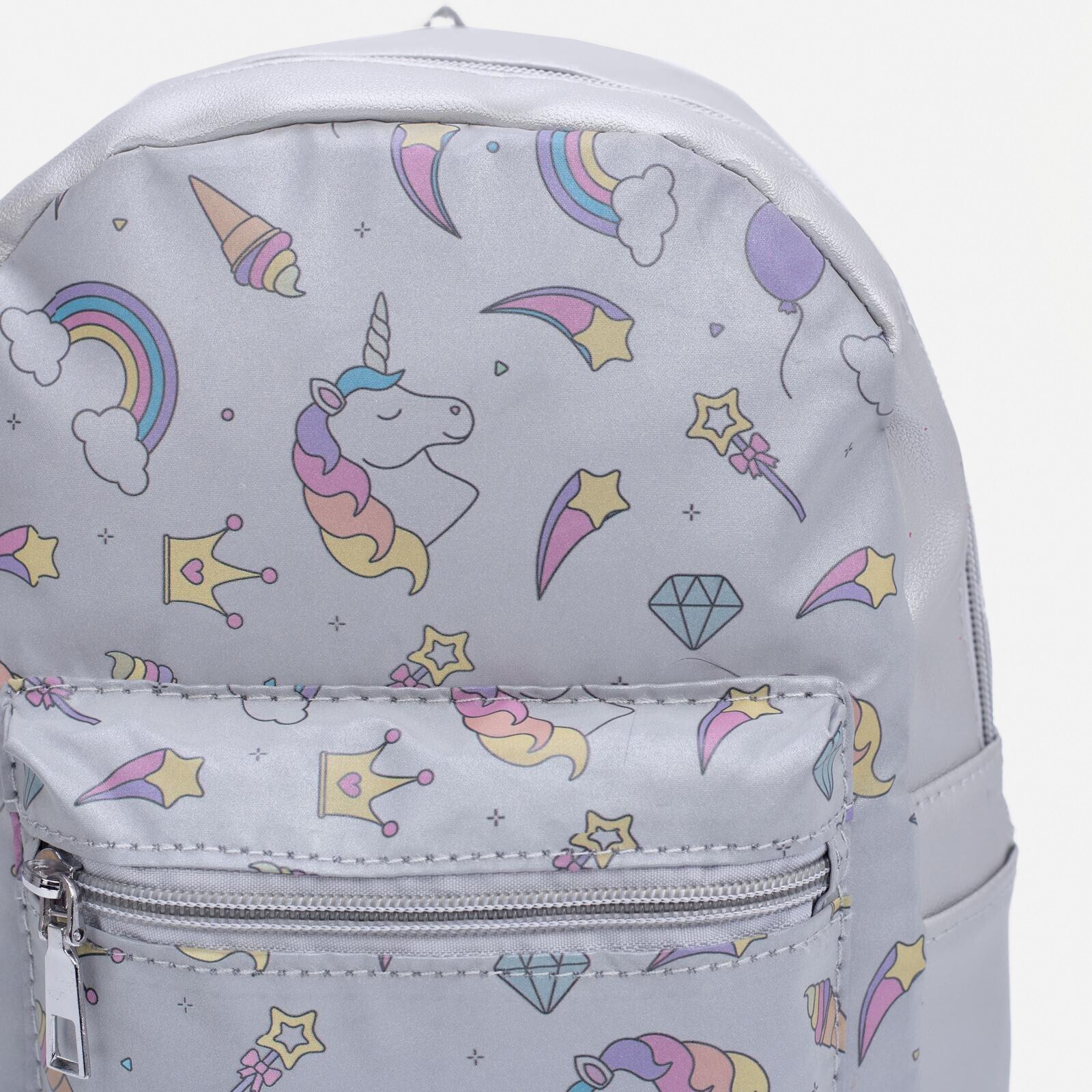 Рюкзак, отдел на молнии, наружный карман, светоотражающий, цвет серый, «Единороги»