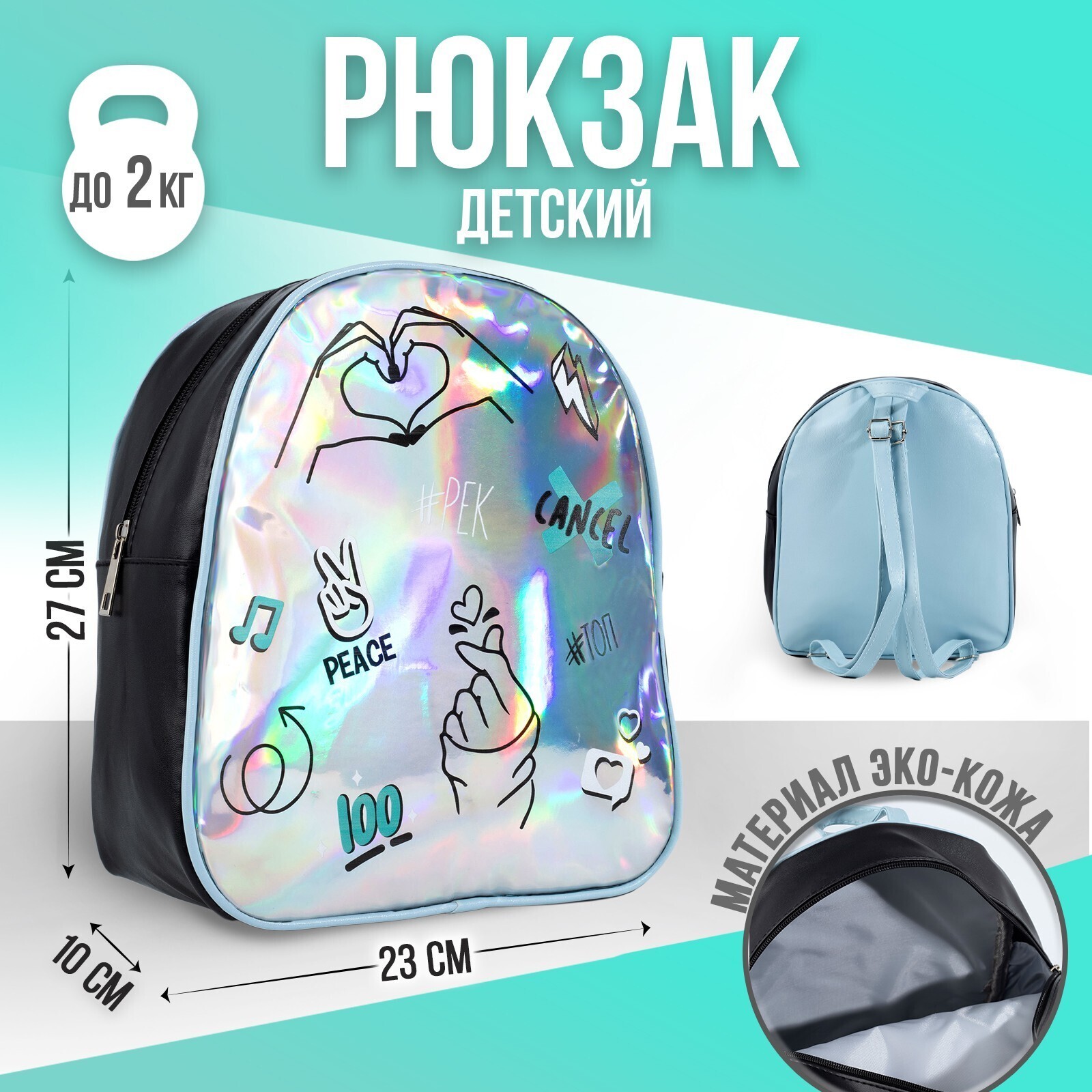 Рюкзак искусственная кожа, PEACE знаки, голография, 27 х 23 х 10 см