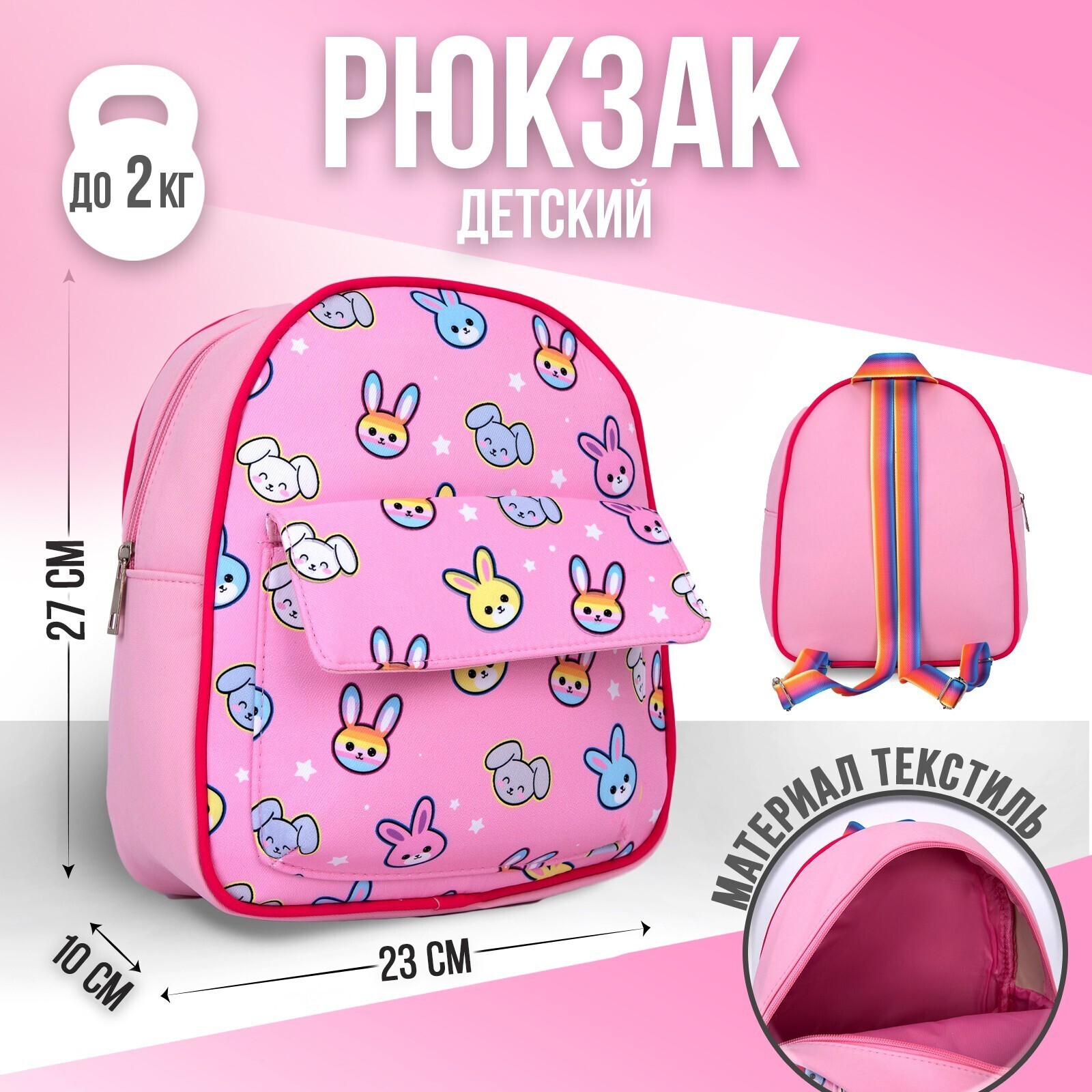 Рюкзак детский текстильный, с карманом «Зайчики», 27×23×10 см